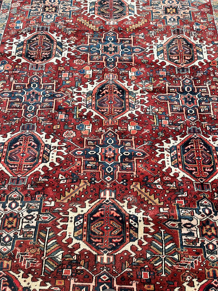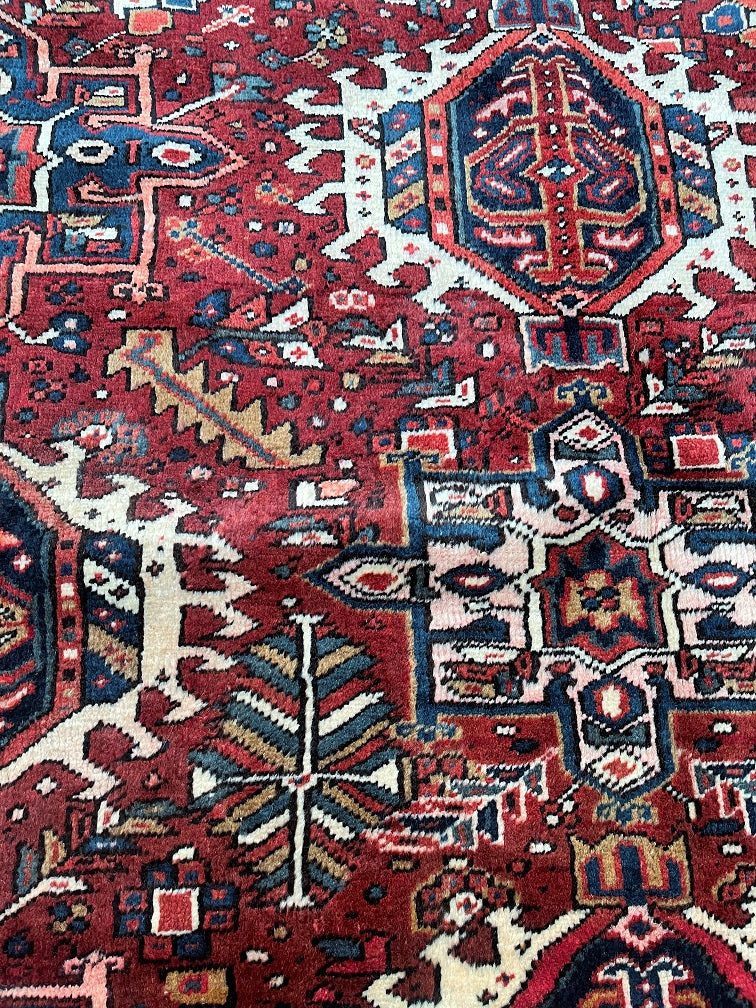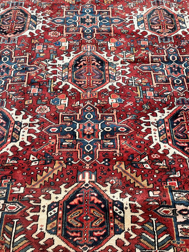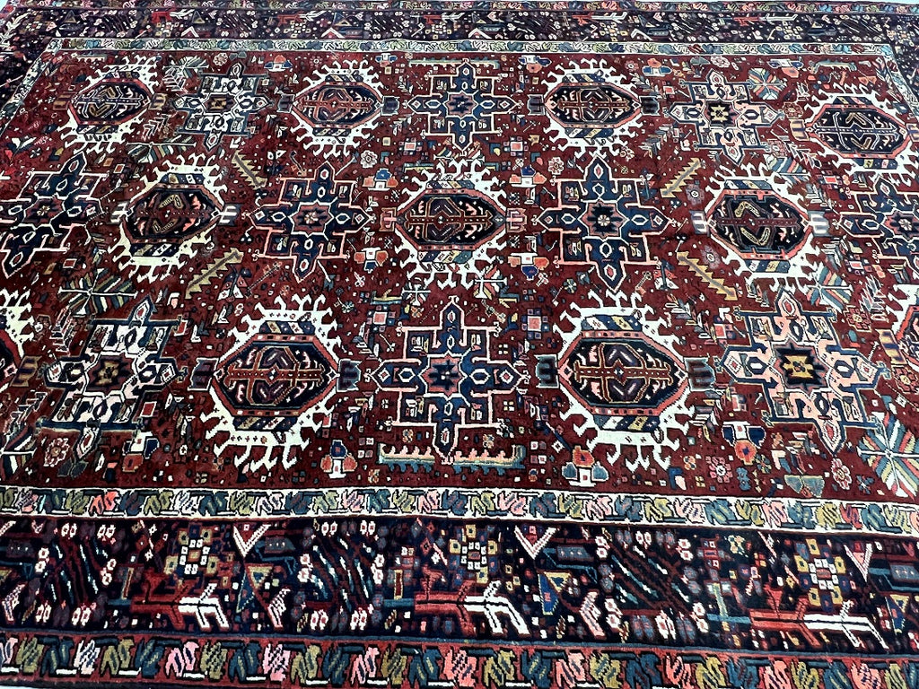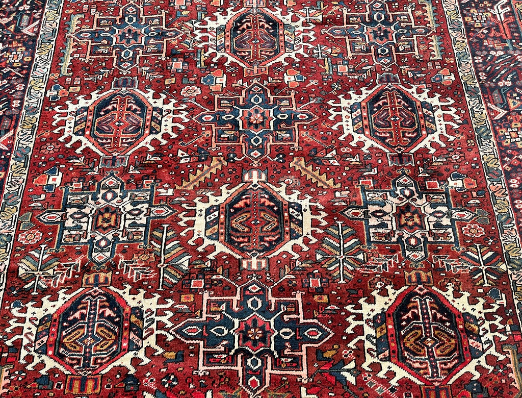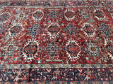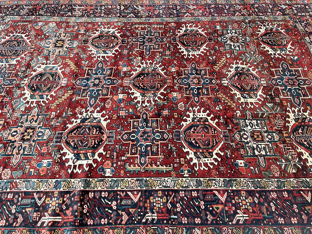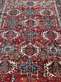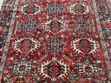 Large Room Size Authentic Handmade Vintage Persian Heriz Rug. Above All Heriz Rugs Are One Of The Hardest Wearing And Feel Very Soft Under The Feet. It Has A Pure Wool Pile On Cotton Base. It Also Has A Deep Terracotta/Brown, Beige, Pink, Black, Green And Blue Tone Dyed Using Traditional Methods.