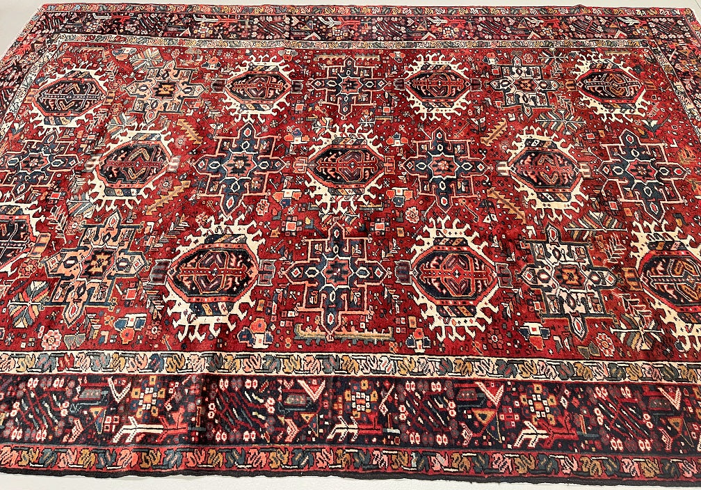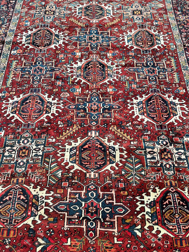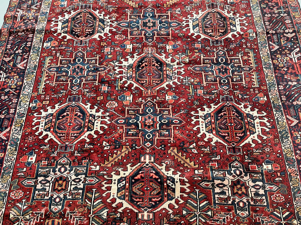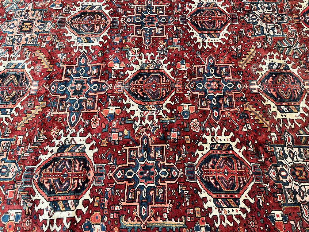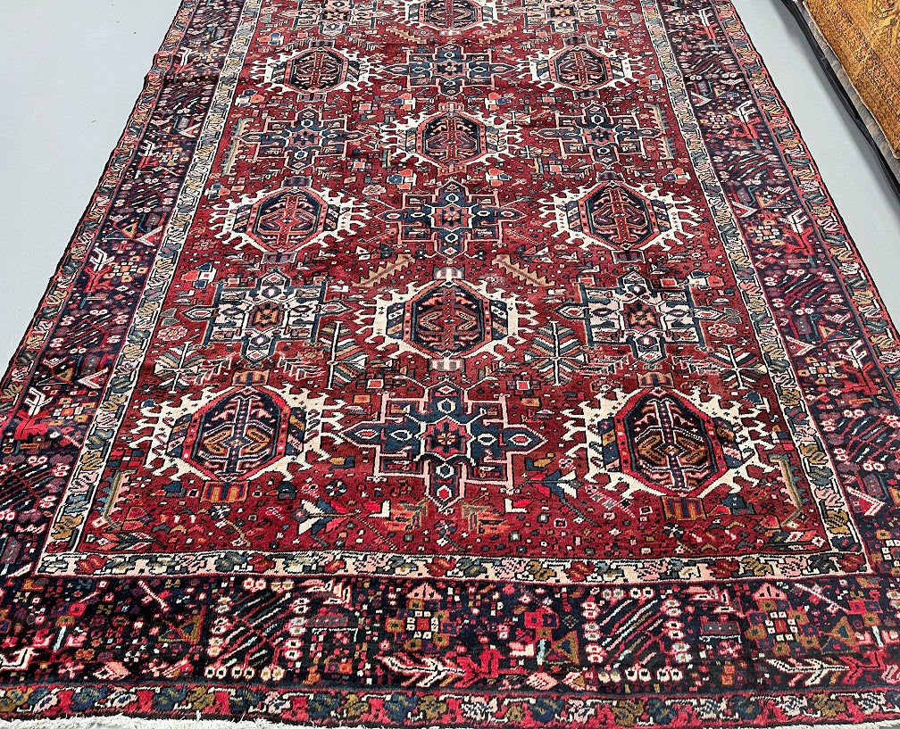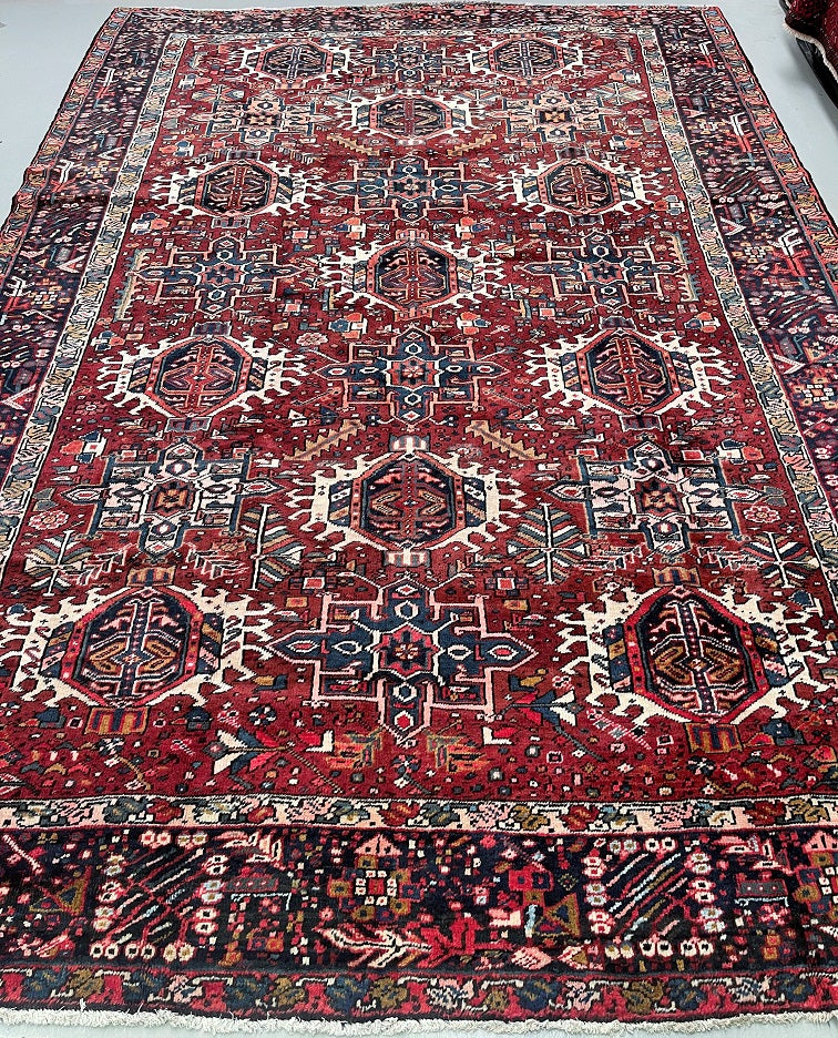 Large Room Size Authentic Handmade Vintage Persian Heriz Rug. Above All Heriz Rugs Are One Of The Hardest Wearing And Feel Very Soft Under The Feet. It Has A Pure Wool Pile On Cotton Base. It Also Has A Deep Terracotta/Brown, Beige, Pink, Black, Green And Blue Tone Dyed Using Traditional Methods.