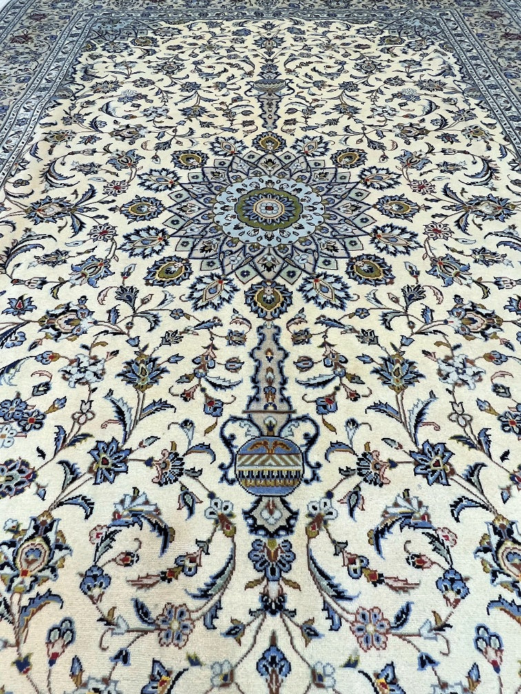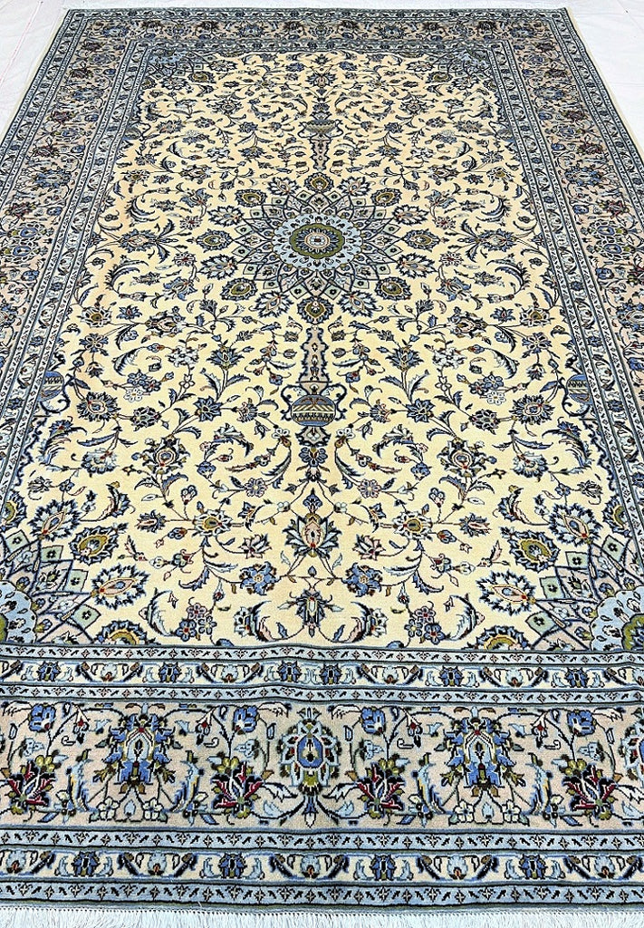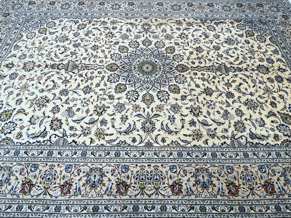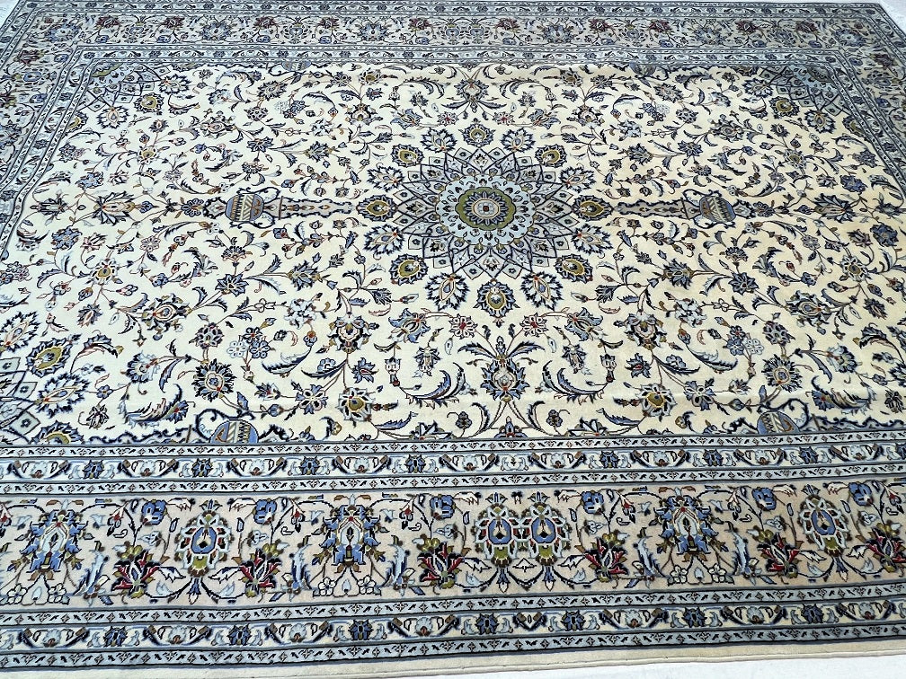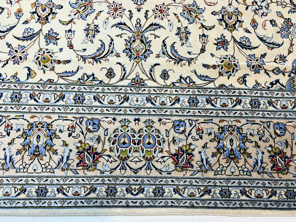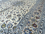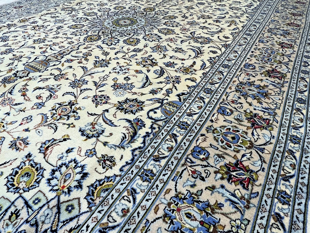 Large Room Size Authentic Handmade Persian Kashan Rug. Above All We Have This Rug In A Matching Pair. It Also Has A Pure Wool Pile On Cotton Base. Beige, Green, Brown And Blue Tone Dyed Using Traditional Methods.