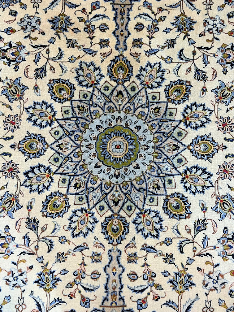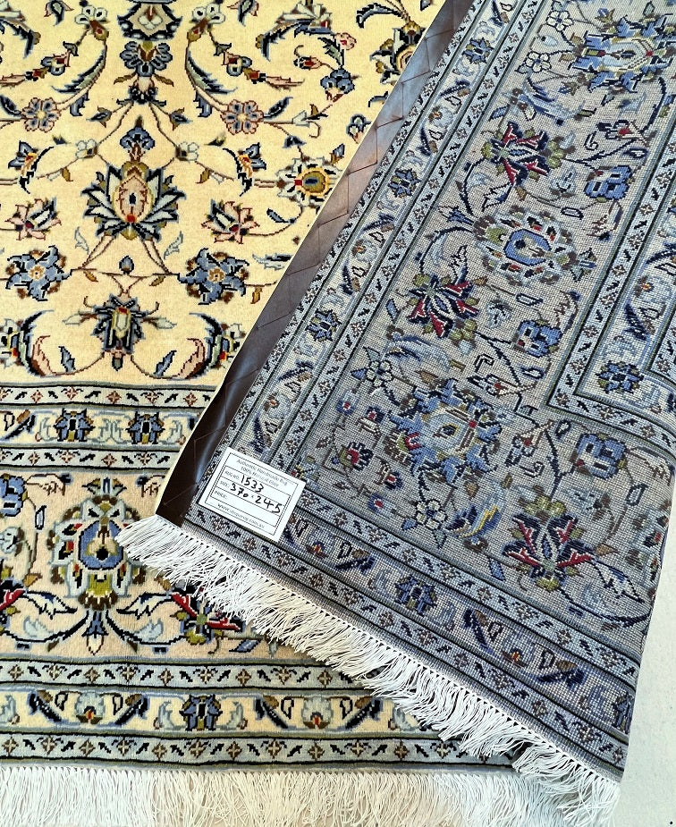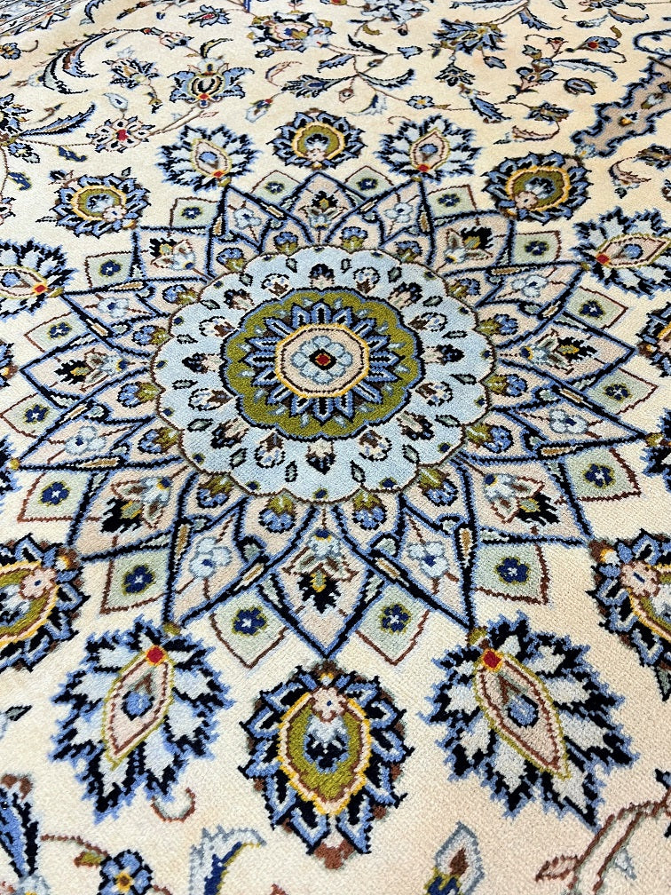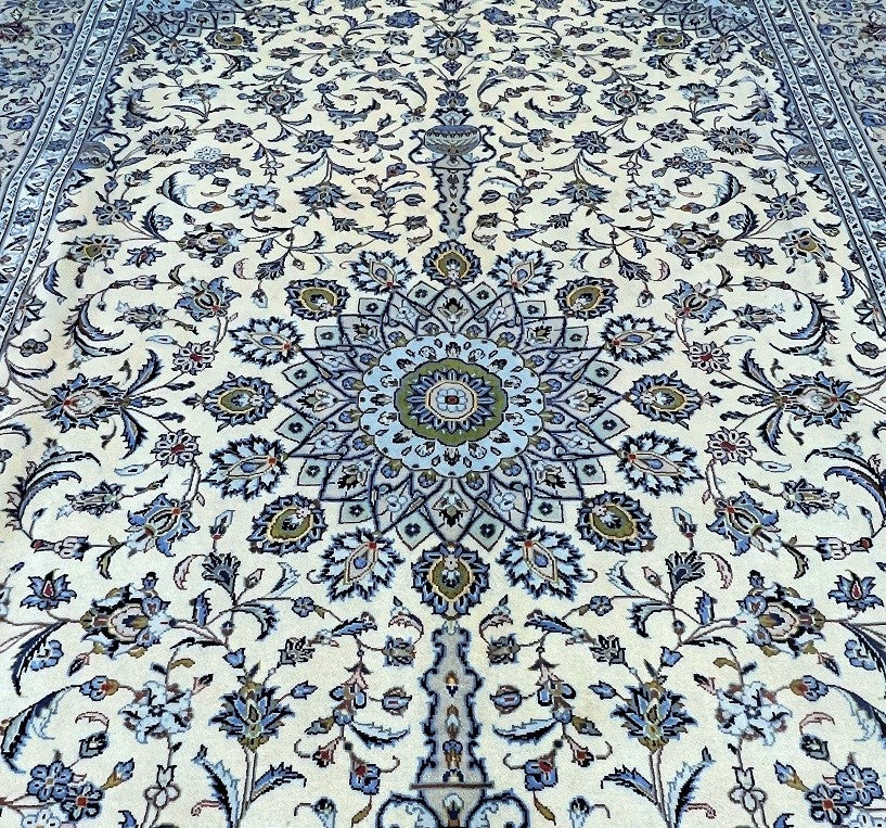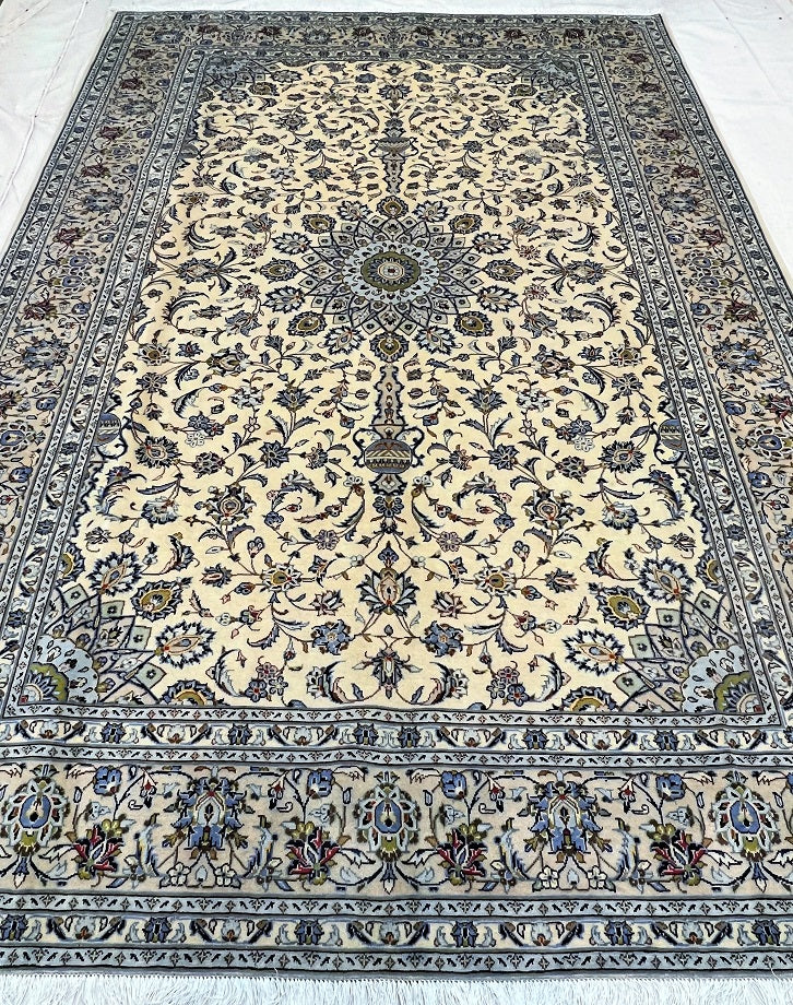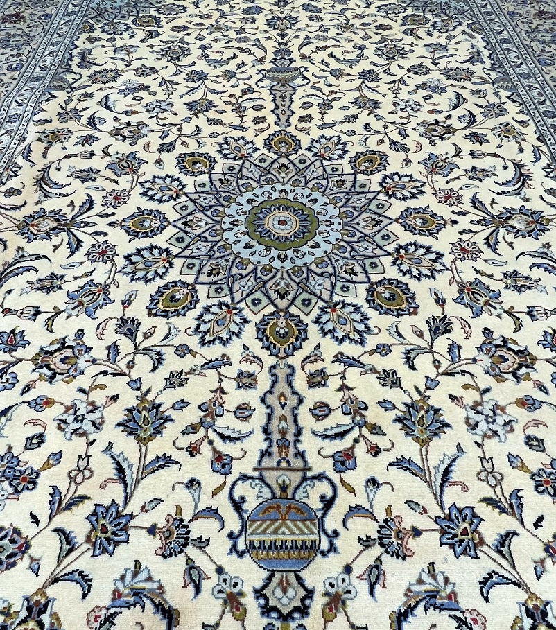 Large Room Size Authentic Handmade Persian Kashan Rug. Above All We Have This Rug In A Matching Pair. It Also Has A Pure Wool Pile On Cotton Base. Beige, Green, Brown And Blue Tone Dyed Using Traditional Methods.