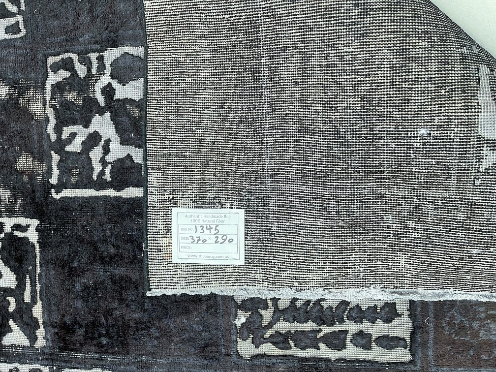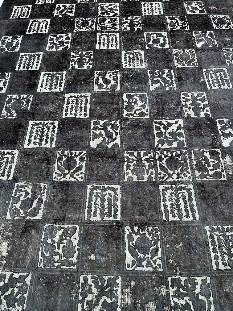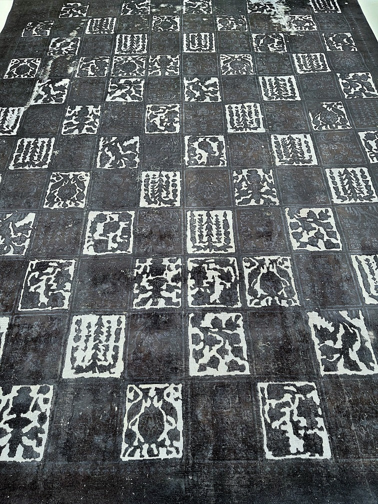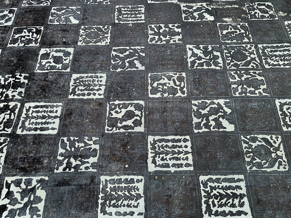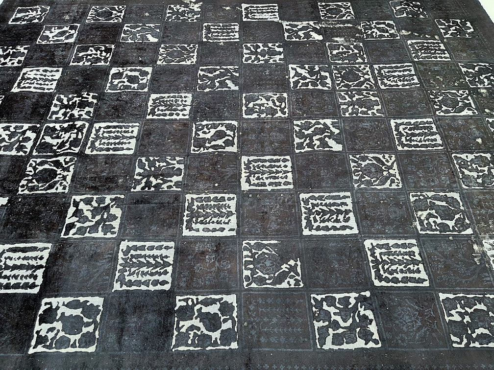 Large Room Size Handmade Over Dyed Vintage Persian Najafabad Rug Which Is Very Popular With Post Modern Décor. Above All This Rug Is Made From A Vintage Rug Which Goes Through Colour Neutralization And Then Dyed With New Colours. Pure Wool Pile On Cotton Base. It Also Has A Charcoal, Black And Grey Tone Dyed Using Traditional Methods.