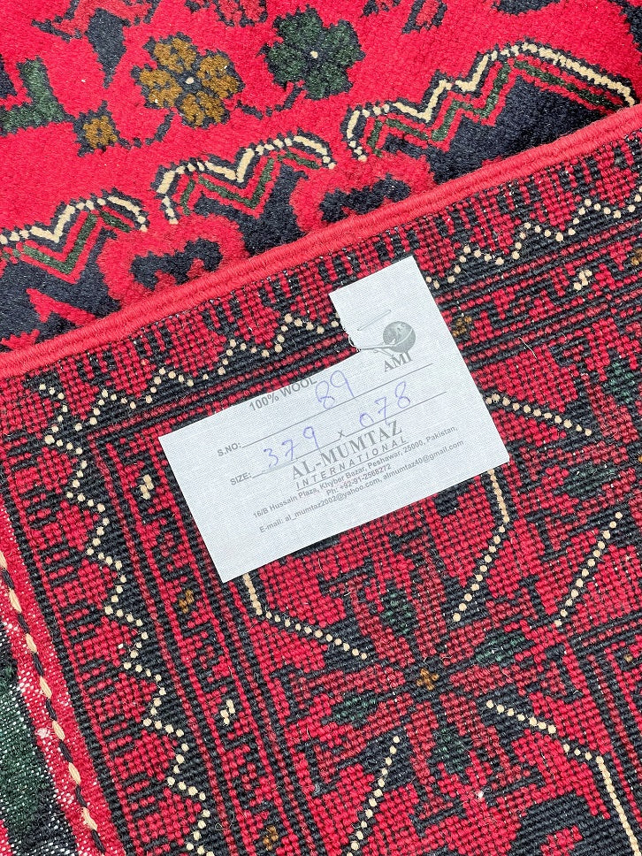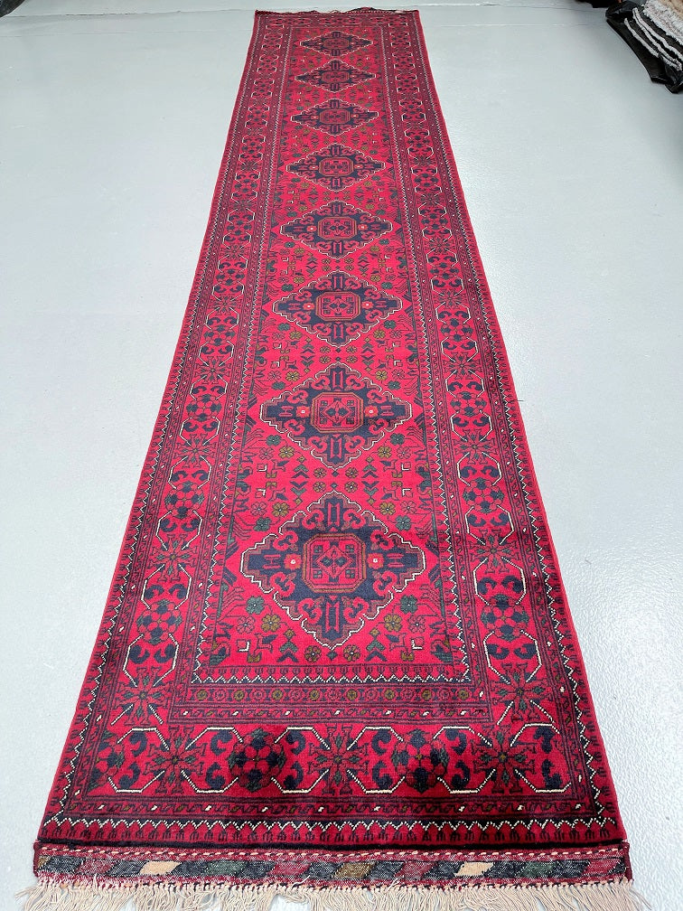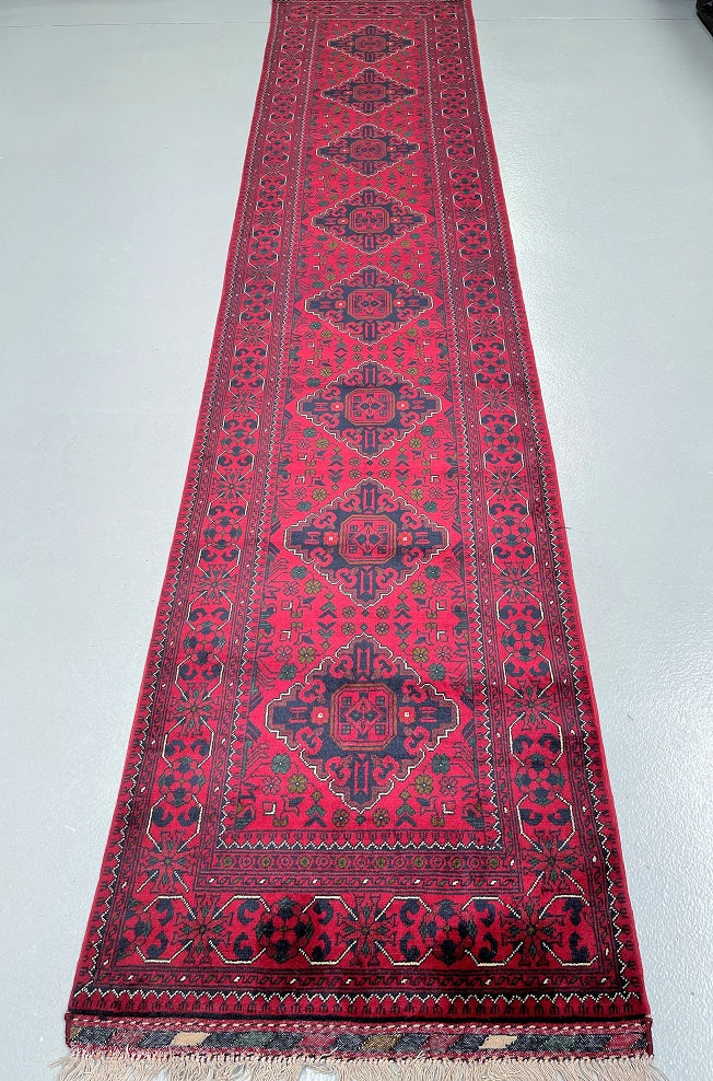 Certified Hand Knotted Afghan Hall Runner 379x78m