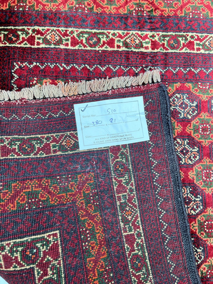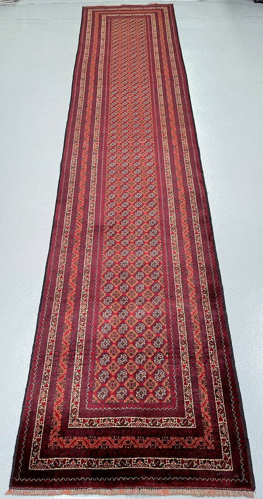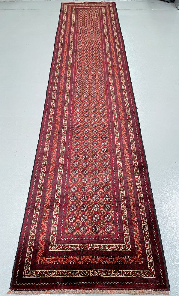 Certified Hand Knotted Afghan Hall Runner 380x81cm
