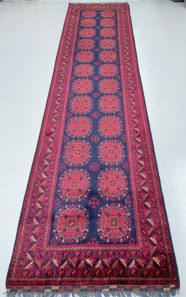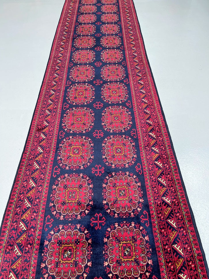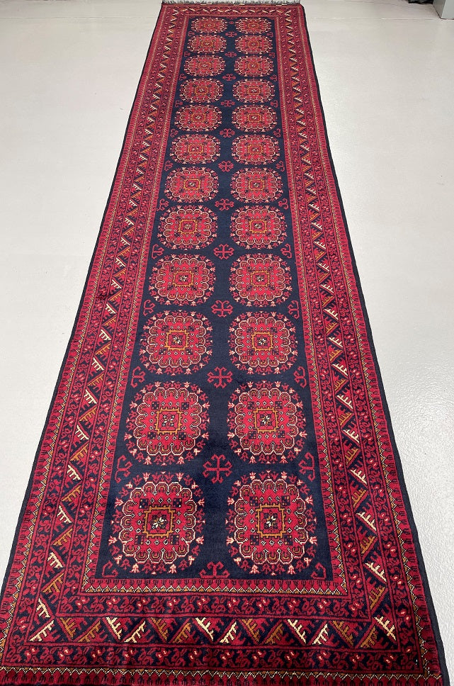 Certified Hand Knotted Afghan Hall Runner 380x95m