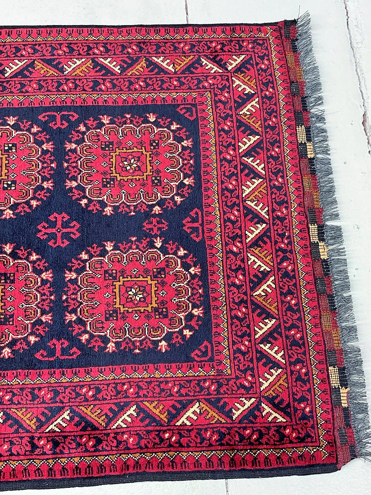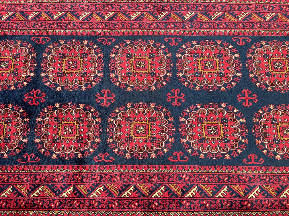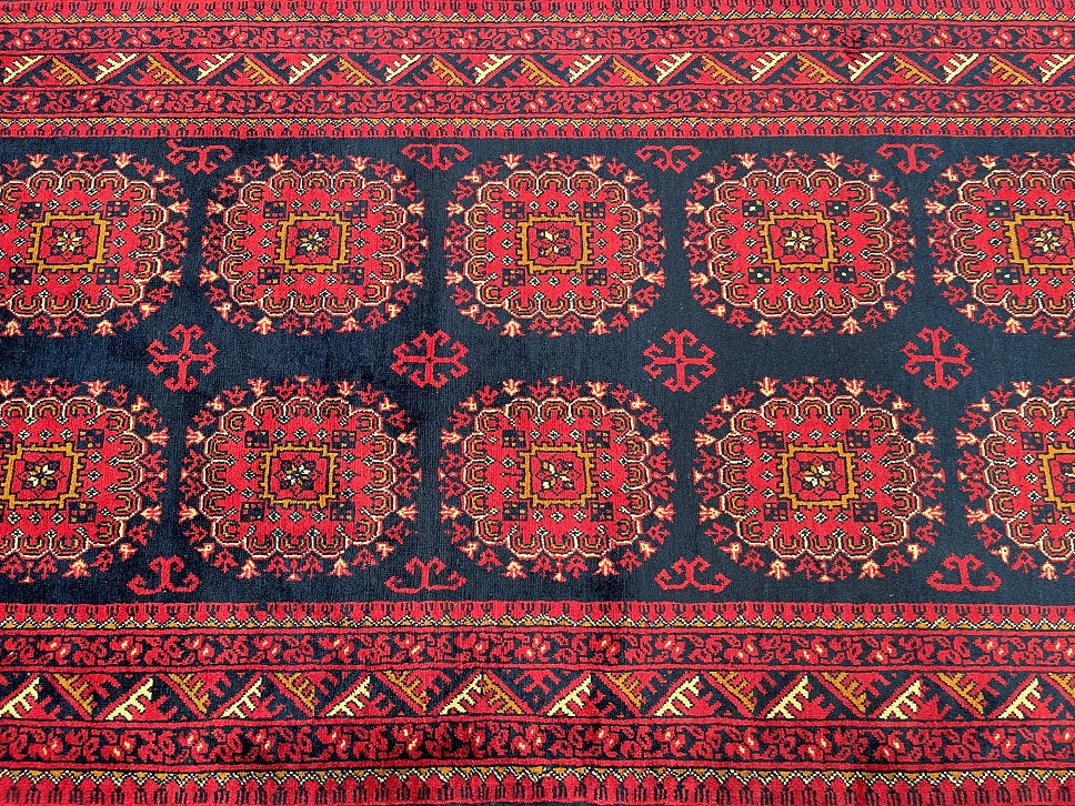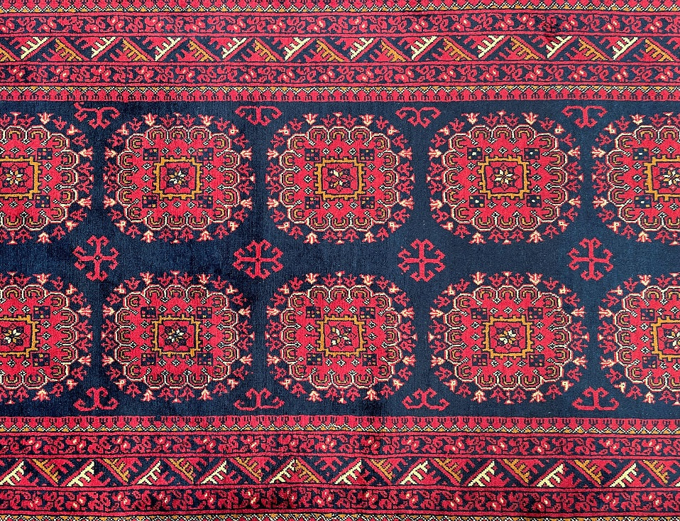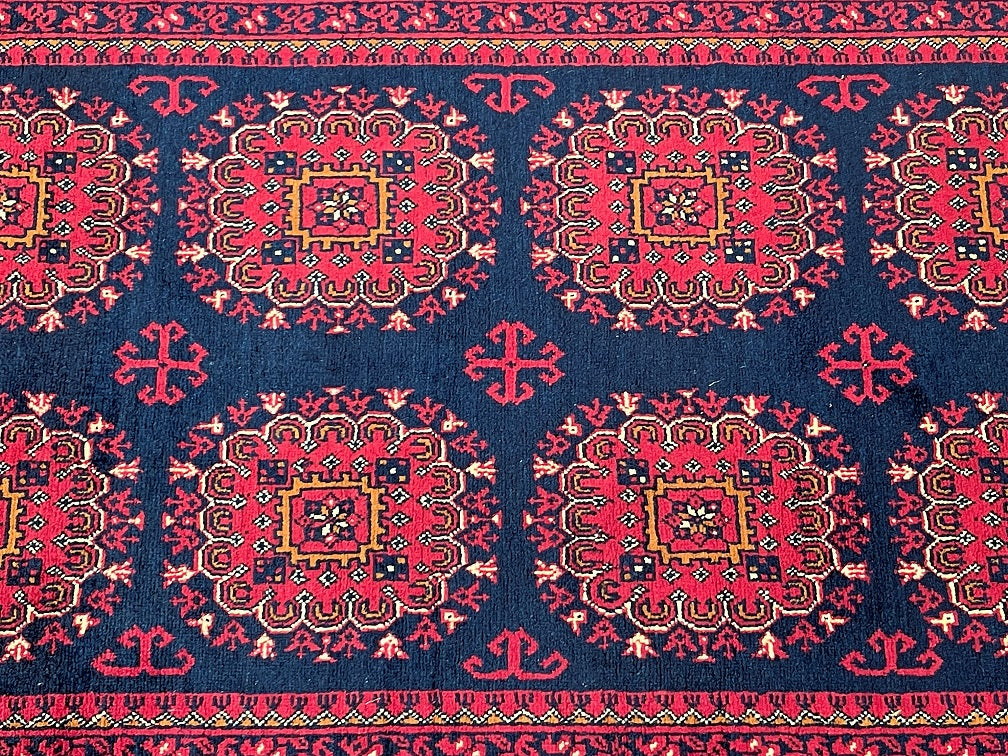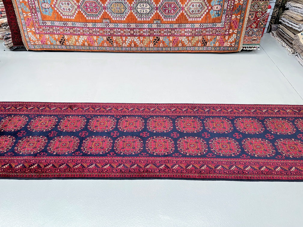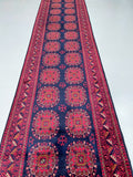 Superb Lamb’s Wool Hand Knotted Tribal Afghan Qunduz Hall Runner. Above All It Has A Pure Hand Spun Lamb’s Wool Pile On Wool Base. It Also Has A Deep Indigo Blue And Maroon/Burgundy Tone Dyed Using Traditional Methods. This Runner Would Look Fantastic On Wooden Floor Board.