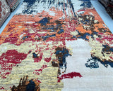 Amazing Large Room Size Authentic Hand Knotted Contemporary Afghan Chobi Rug. Above All It Has a Pure Hand Spun Wool Pile On Cotton Base. Beige, Blue, red, Brown, Orange And Gold Tone Dyed Using Traditional Methods (Vegetable Dyes). Last of True Woven Nomadic Art.