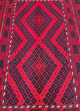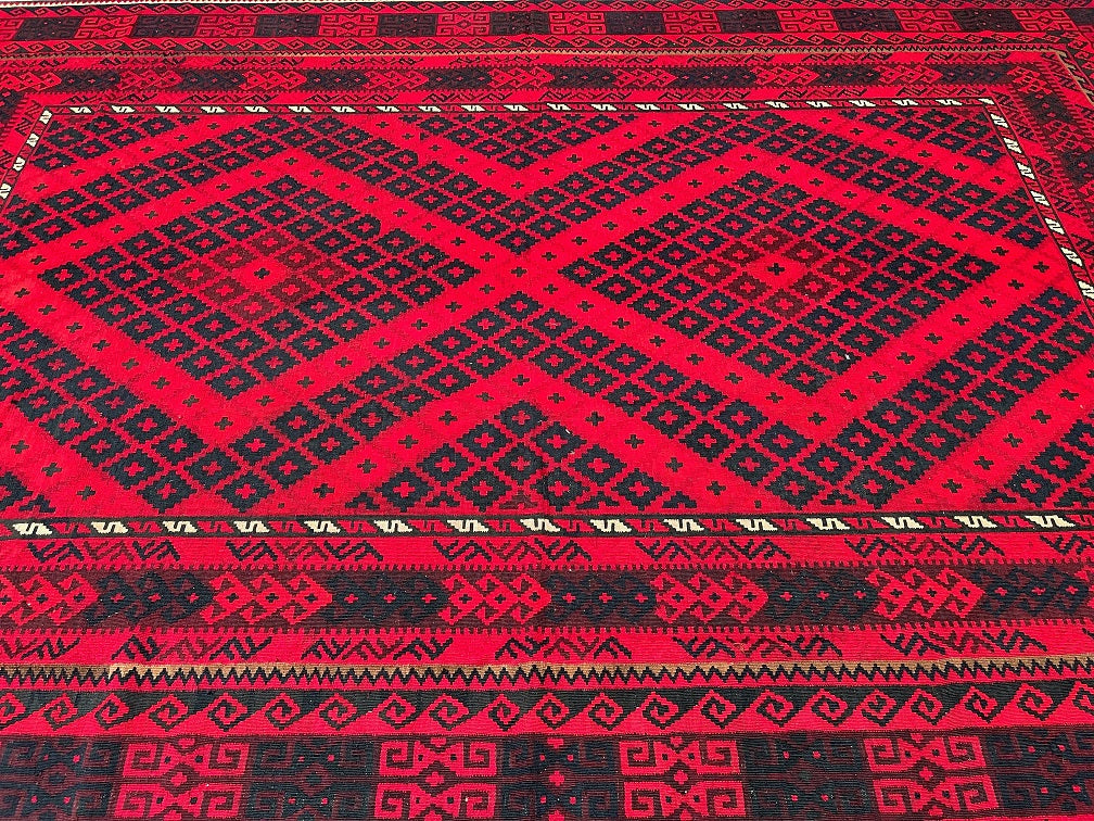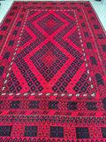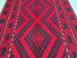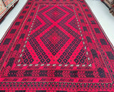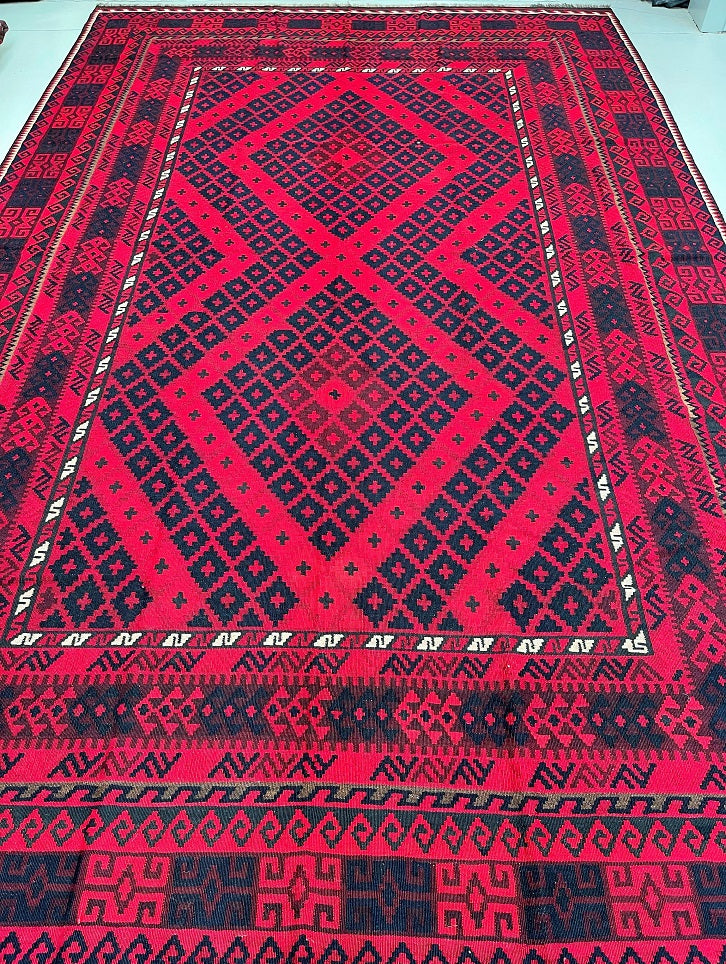 Large Room Size Tribal Hand Woven Vintage Afghan Meymaneh Kilim Rug. Ideal for Lounge or Dining Room. It Also Has A Pure Hand Spun Wool Pile On Wool Base. Rich Maroon/Burgundy, Black, Beige And Brown Tone Dyed Using Traditional Methods.