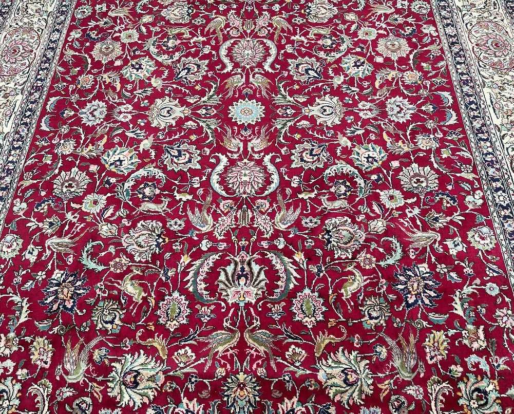 Rare Massive Room Size Authentic Antique Persian Tabriz Rug Signed. Above All This Is A Highly Collectible Rug Woven Circa 1950’s In Mint Condition. It Also Has A Pure Wool Pile On Cotton Base. It Also Has A Maroon Red, Beige, Green, Indigo Blue And Pink Tone Dyed Using Traditional Methods. Signed From Weaving House Of “Taghizadeh-Tabriz”.