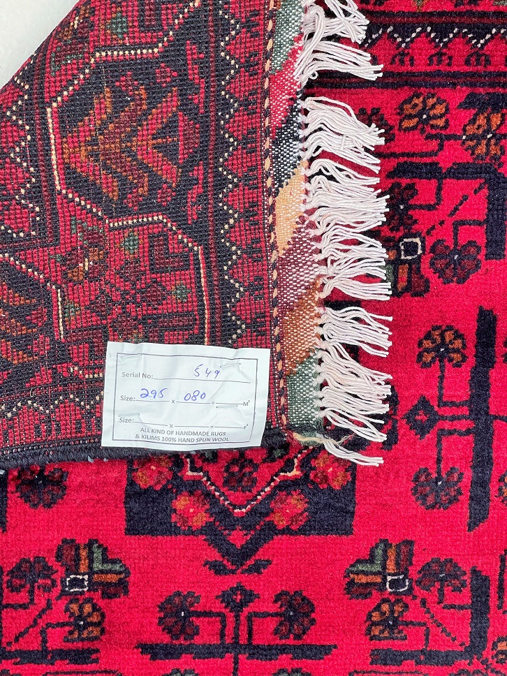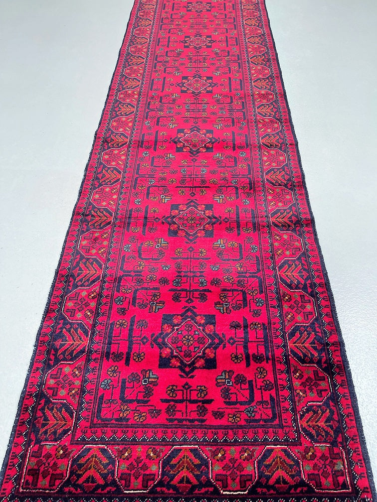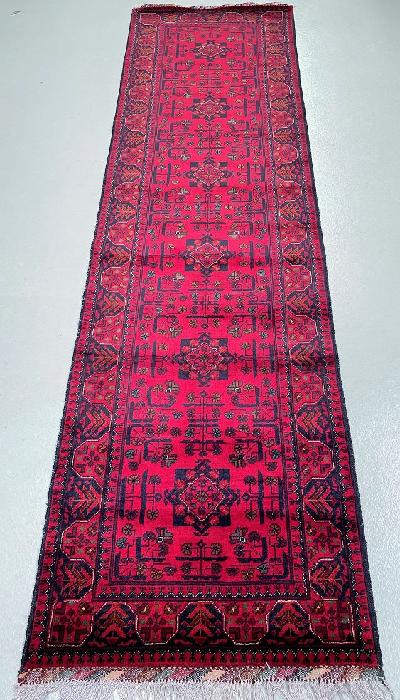 Certified Hand Knotted Afghan Hall Runner 295x80cm