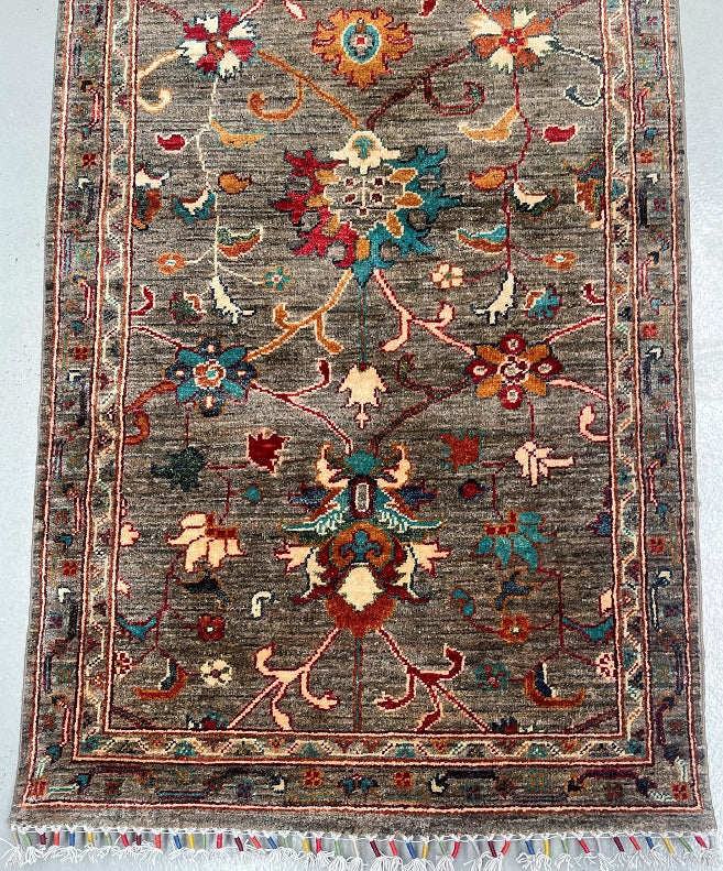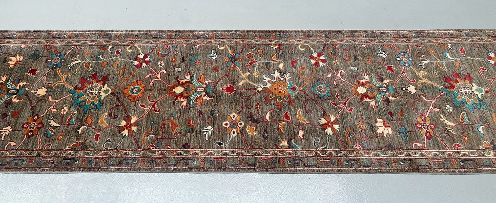 Superb Handmade Afghan Sultani Chobi Hall Runner. Above All It Has A Soft Hand Spun Wool Pile On Cotton Base. Light Brown, Beige, Blue, Maroon, Orange And Green Tone Dyed Using Traditional Methods (Vegetable Dyes).