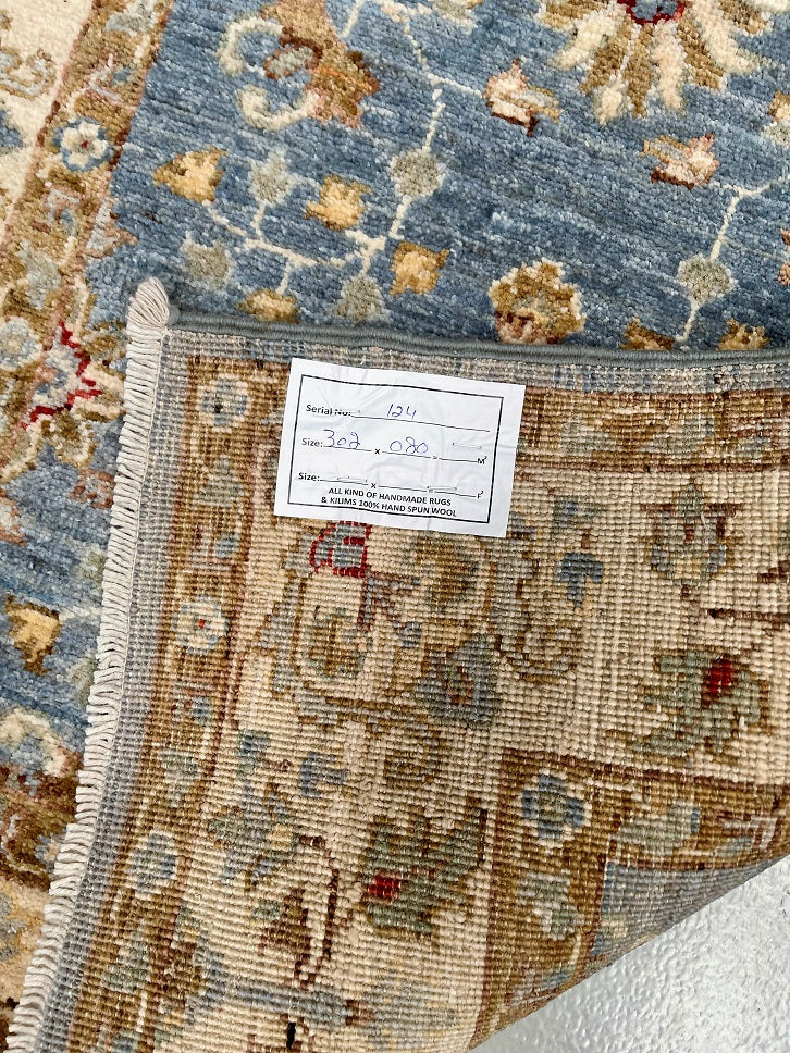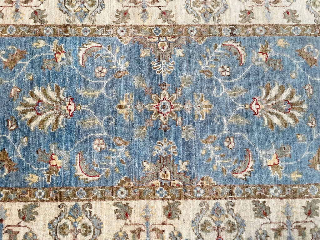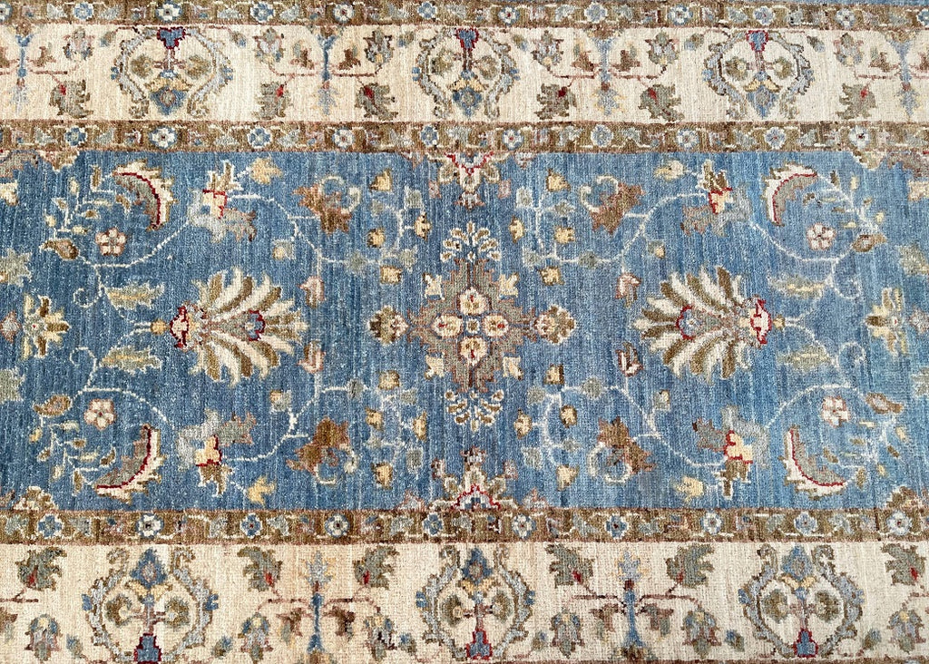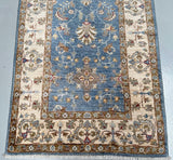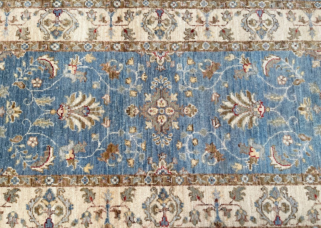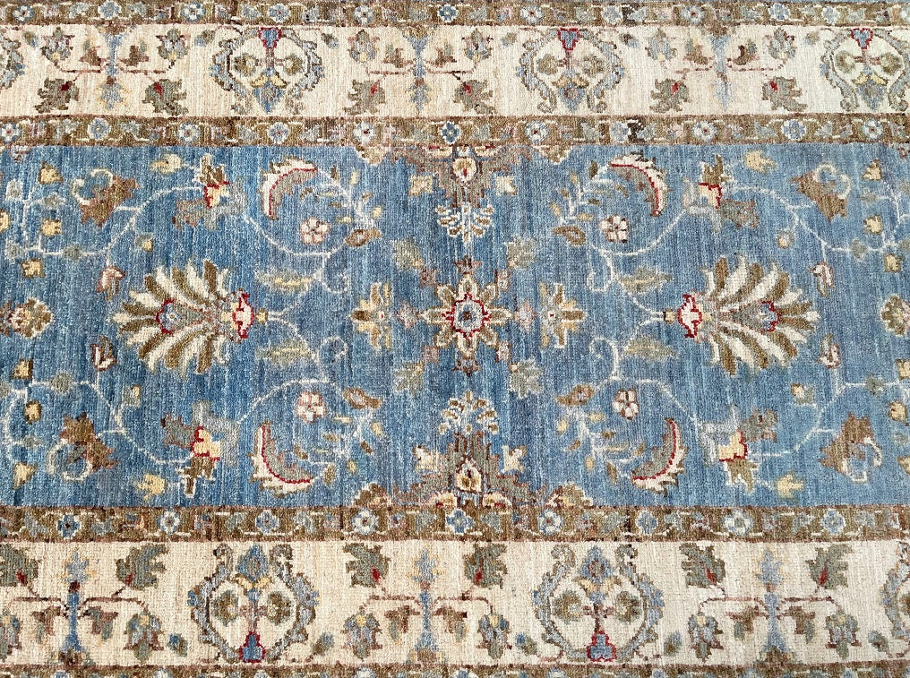 Superb Handmade Afghan Sultani Chobi Hall Runner. Above All It Has A Soft Hand Spun Wool Pile On Cotton Base. Light Blue, Beige, Grey, Maroon And Brown Tone Dyed Using Traditional Methods (Vegetable Dyes).