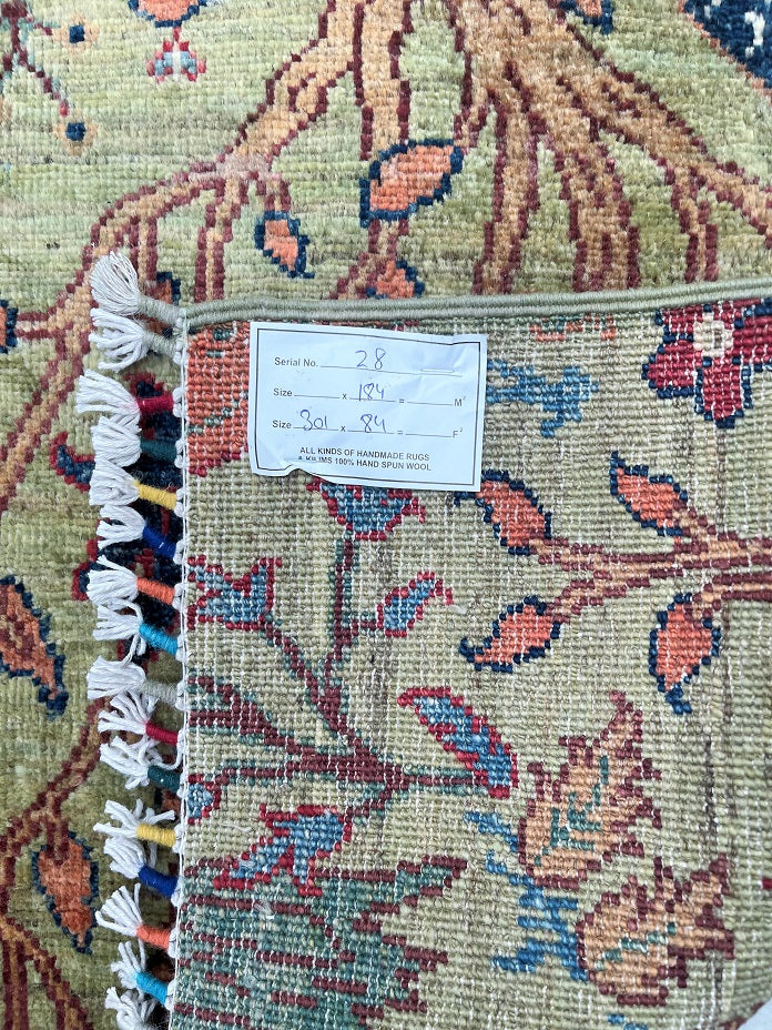 Certified Hand Knotted Afghan Hall Runner 301x84cm