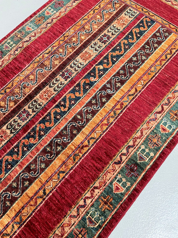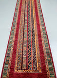 Gorgeous Authentic Handmade Afghan Royal Kazak Hall Runner. Above All It Has A Pure Hand Spun Wool Pile On Cotton Base. Multi-Color Tones Dyed Using Traditional Methods (Vegetable Dyes). Last Of True Woven Tribal Art.