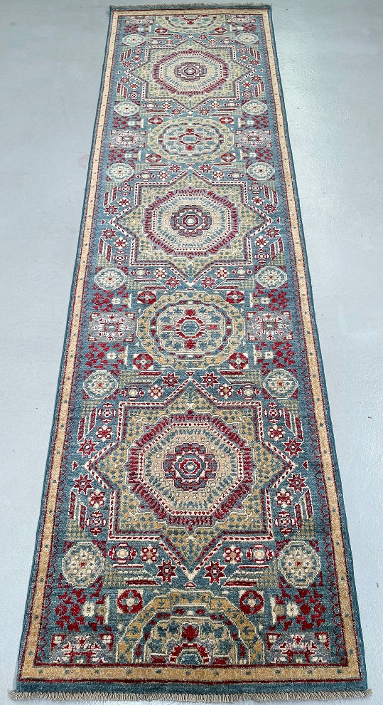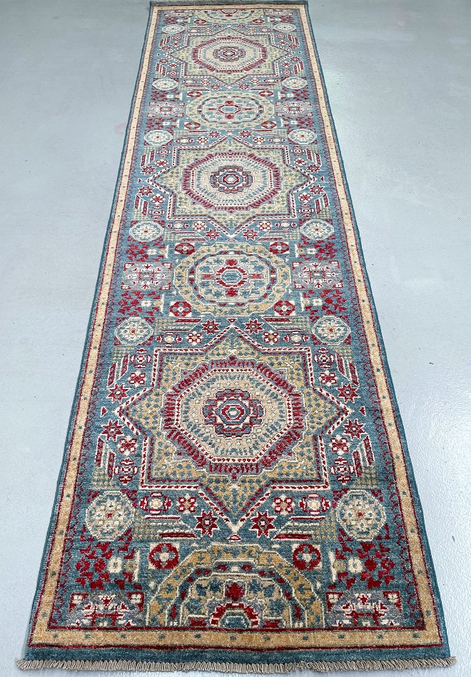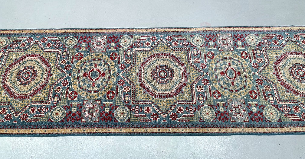 Certified Hand Knotted Afghan Hall Runner 303x82cm