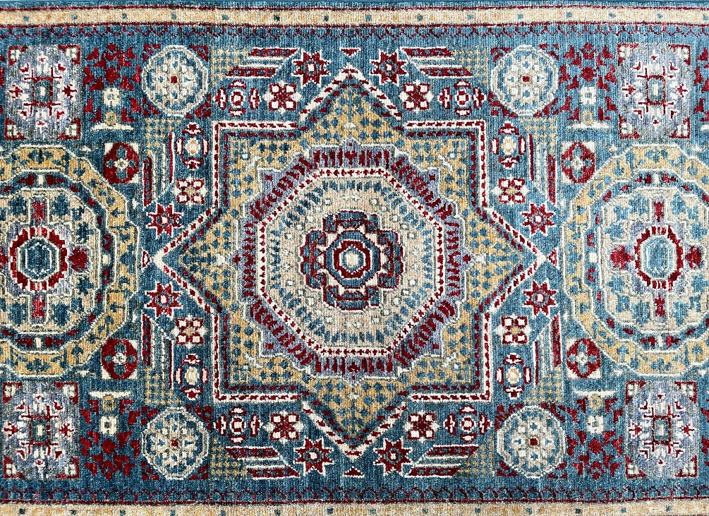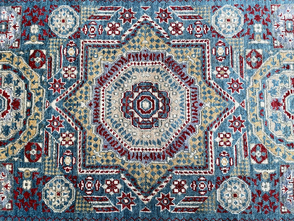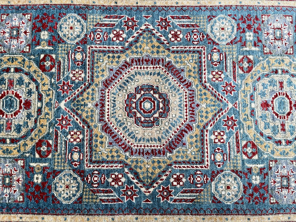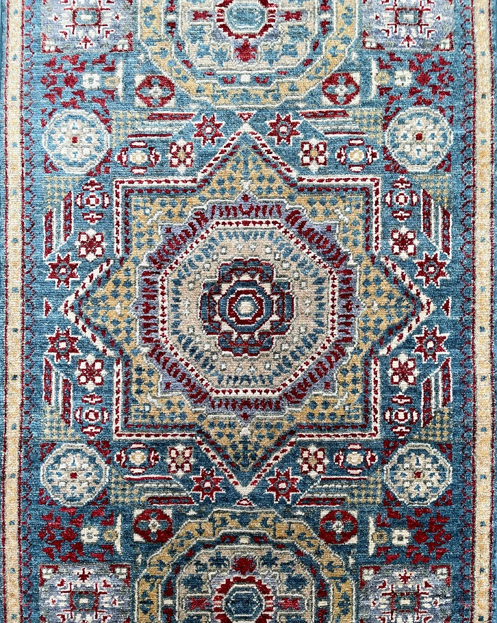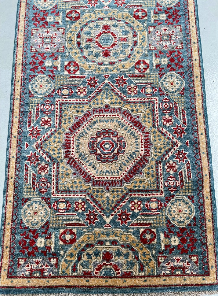 Gorgeous Authentic Handmade Afghan Mamluk Hall Runner. Above All It Has A Pure Hand Spun Wool Pile On Cotton Base. Green/Aqua Marine, Beige, Gold And Red Tones Dyed Using Traditional Methods (Vegetable Dyes). Last Of True Woven Tribal Art.