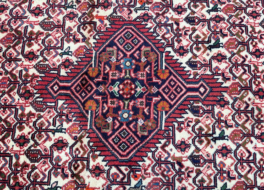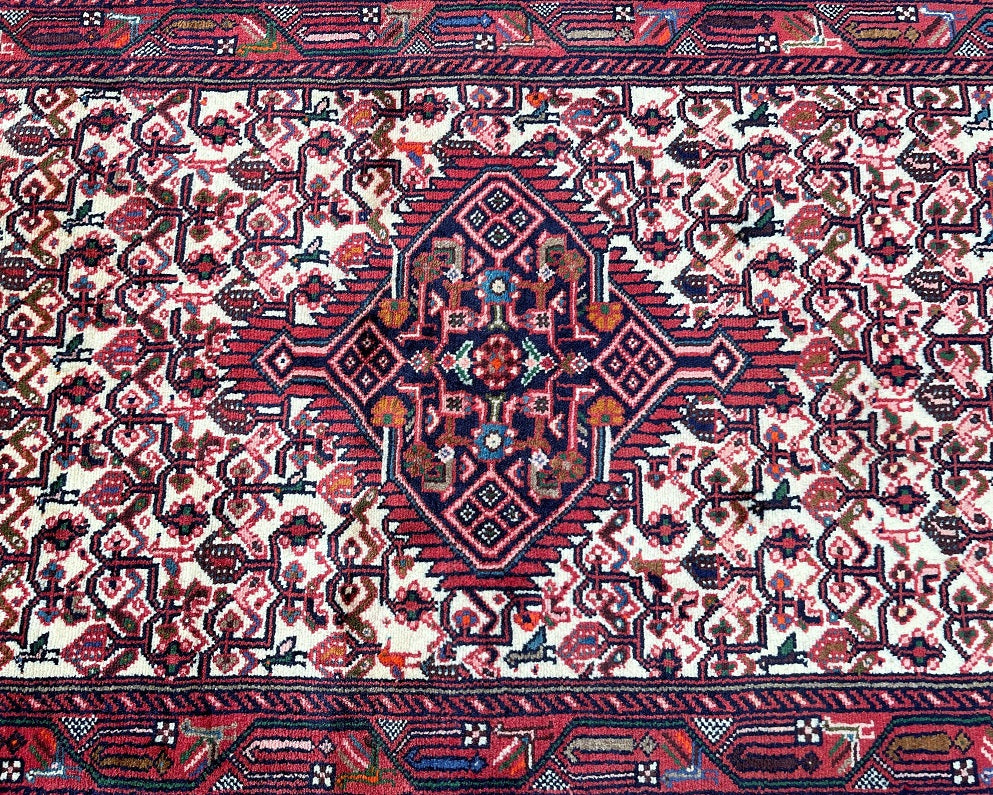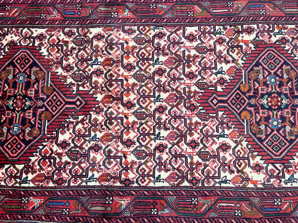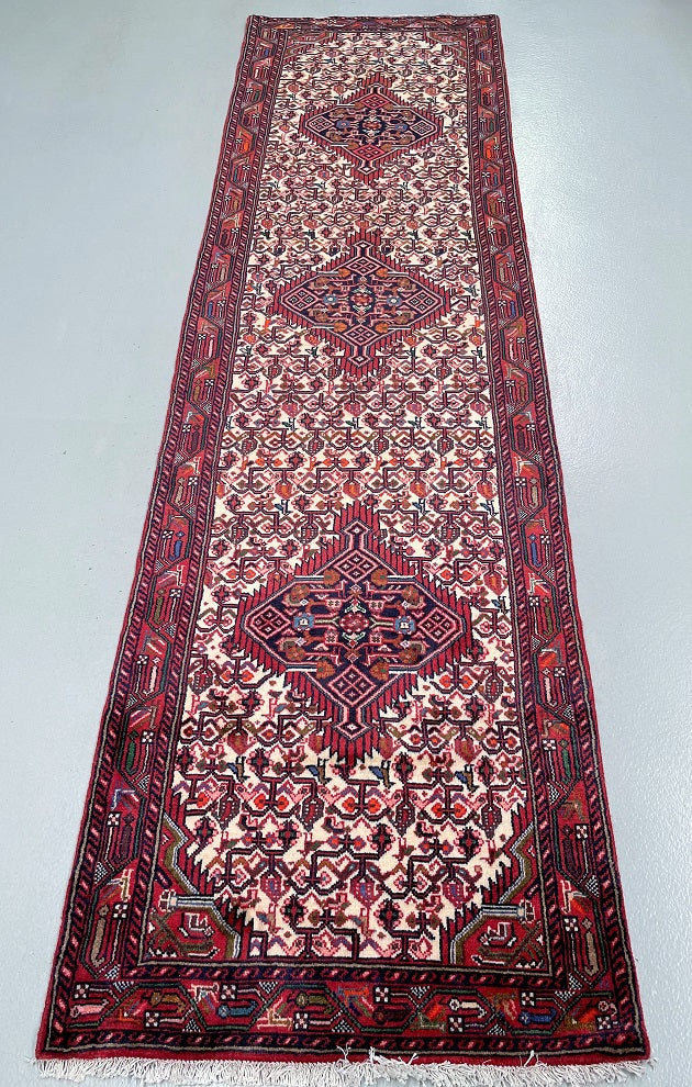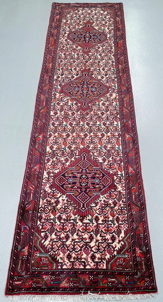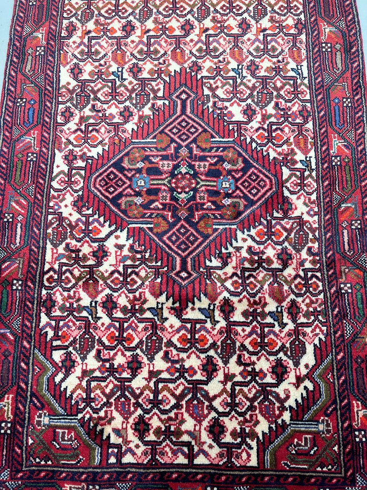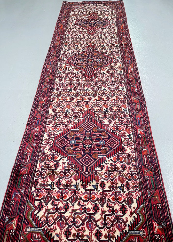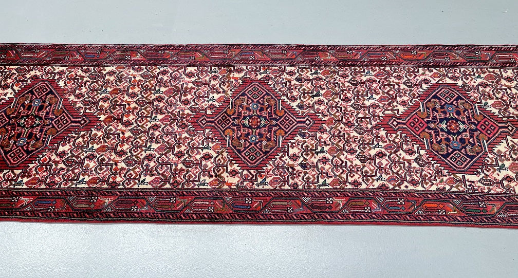 Collectible Authentic Tribal Handmade Persian Hamedan Hall Runner. Above All It Is Has A Pure Hand Spun Wool Pile On Cotton Base. It Also Has A Beige, Terracotta Red, Blue, Orange, Green And Pink Tone Dyed Using Traditional Methods.