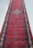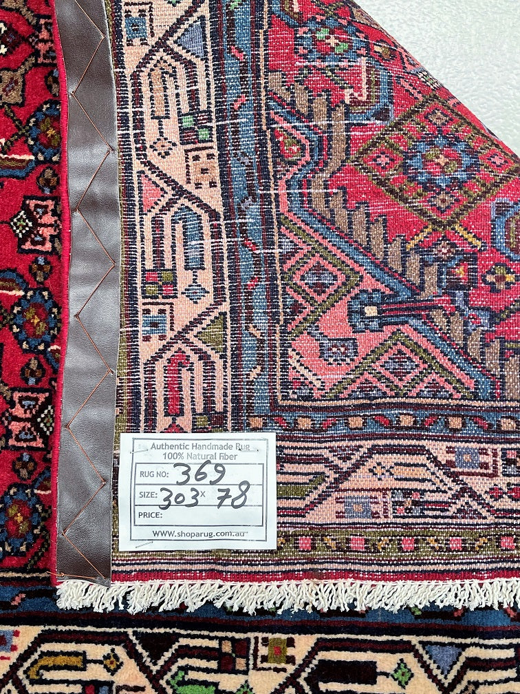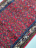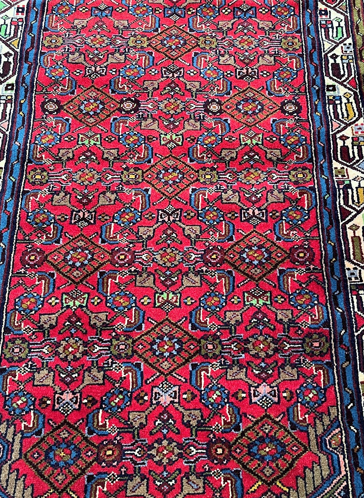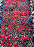 Rare Authentic Handmade Tribal Persian Taj Abad Runner. Above All It Is A Very Hard Wearing Runner. Pure Hand Spun Wool Pile On Cotton Base. It Also Has A Soft Red Background Dyed Using Traditional Methods.
