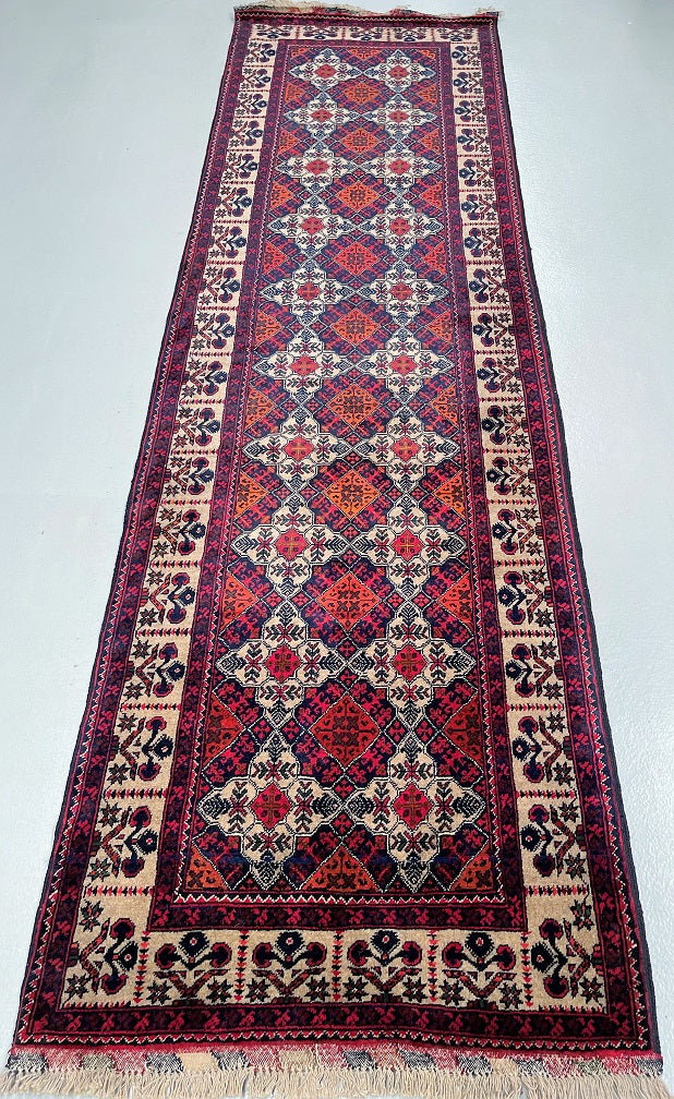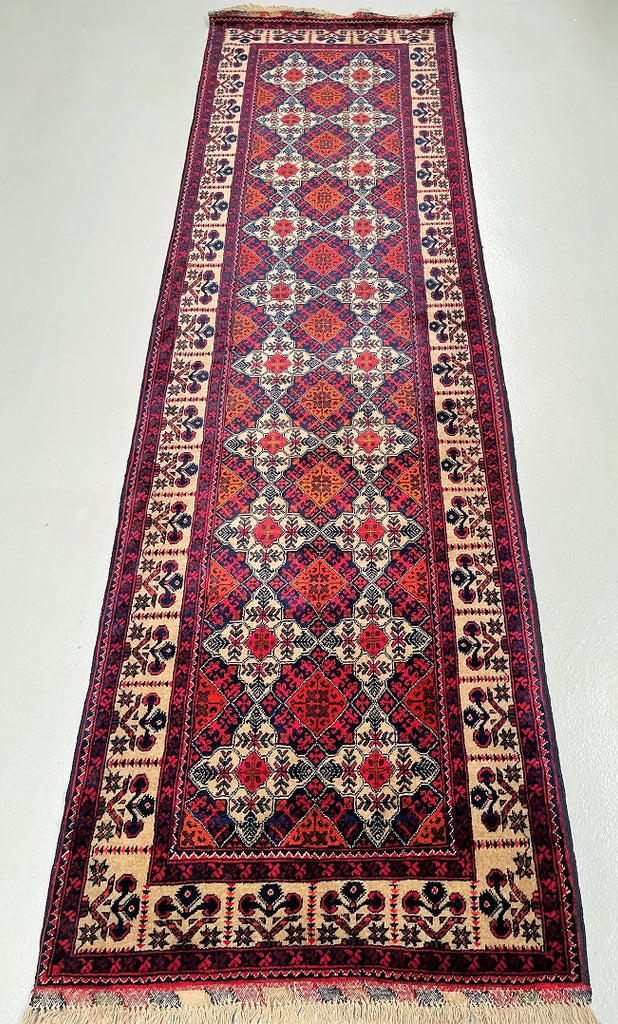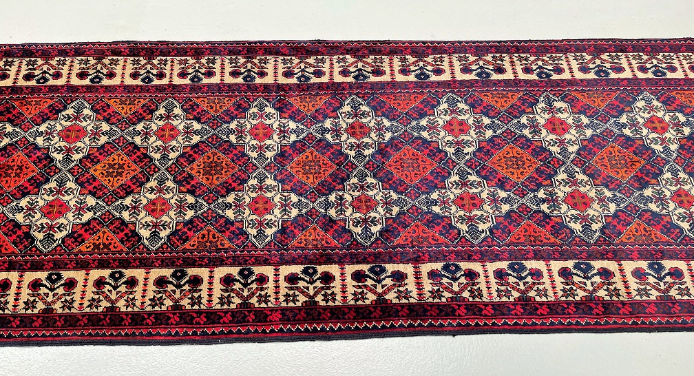 Certified Hand Knotted Afghan Hall Runner 296x88cm