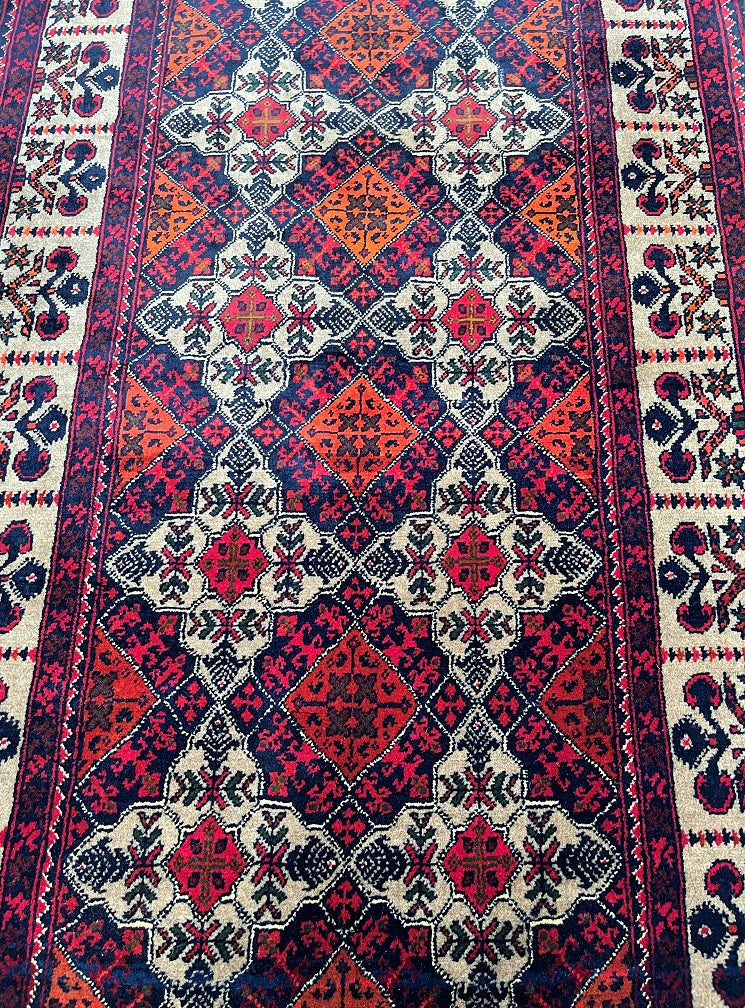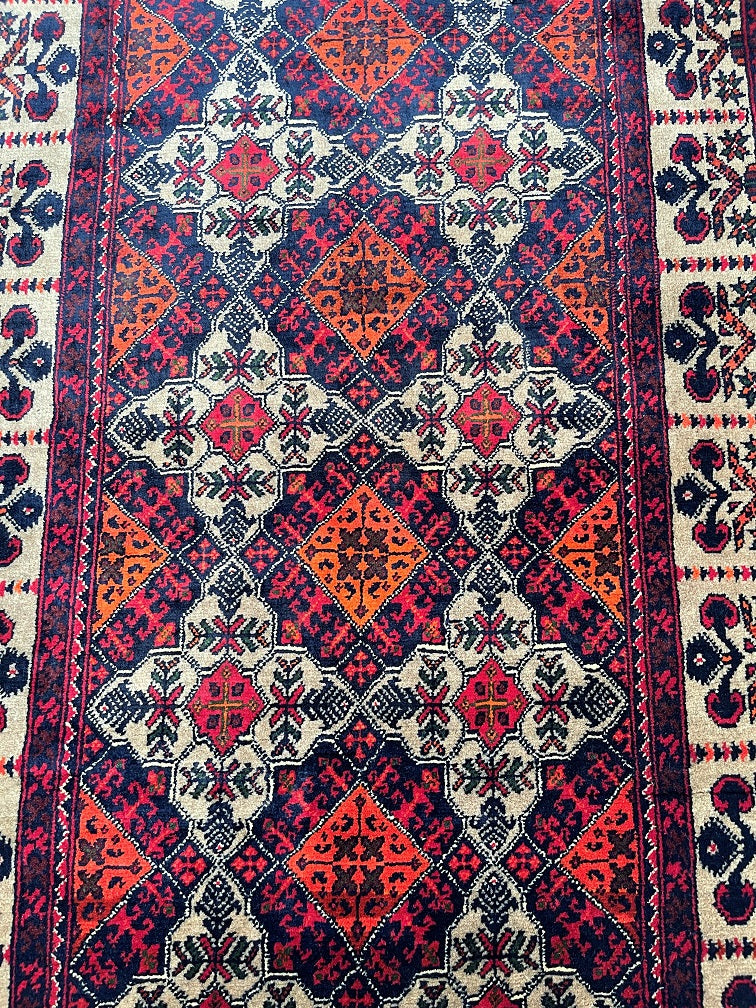Fine Quality Genuine Handmade Afghan Roshnai Hall Runner. Above All We Do Have This Runner In A Matching Pair. It Also It Has A Pure Hand Spun Wool Pile On Cottons Base. It Has A Beige, Maroon, Orange, Indigo Blue And Green Tone Dyed Using Traditional Methods. This Runner Would Look Fantastic On Wooden Floor Board.