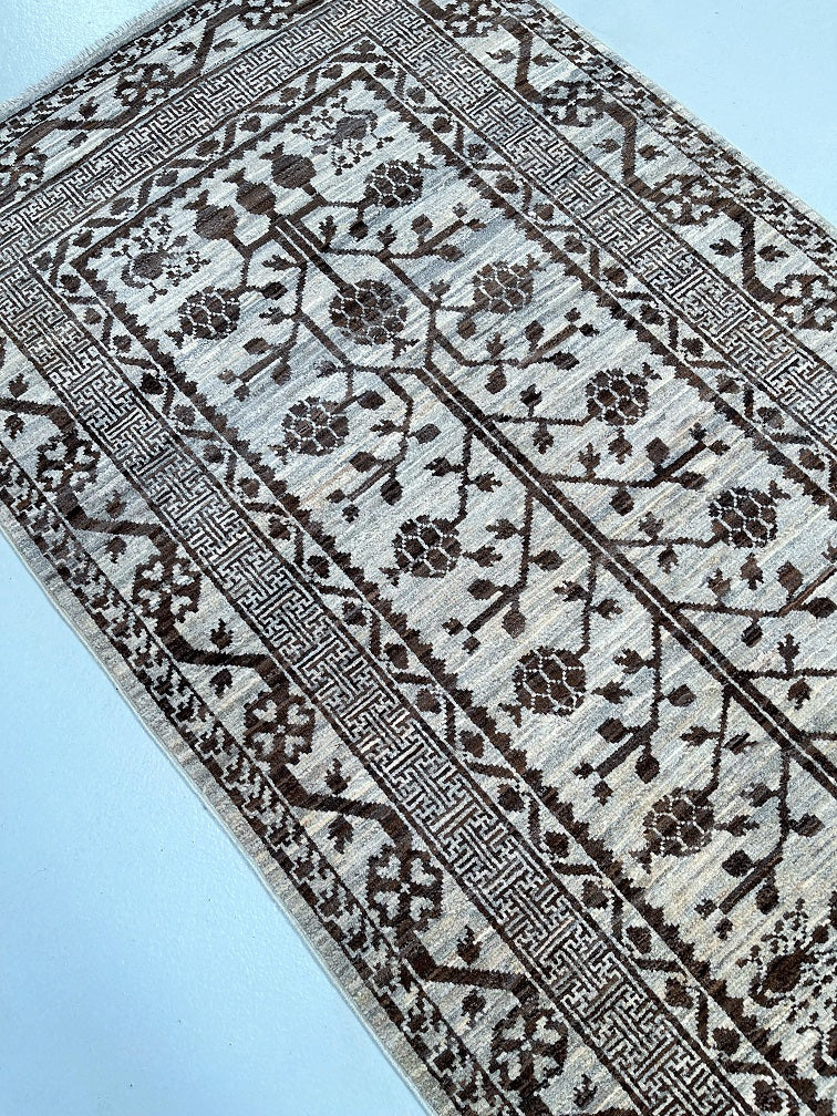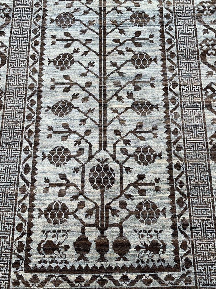 Gorgeous Authentic Handmade Afghan Turkoman Hall Runner. Above All It Is Pure Hand Spun Wool Pile On Cotton Base. Mostly Un-dyed Grey, Beige And Brown Tone. Last of True Woven Nomadic Art.