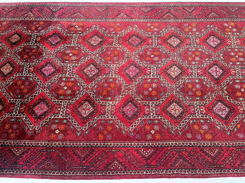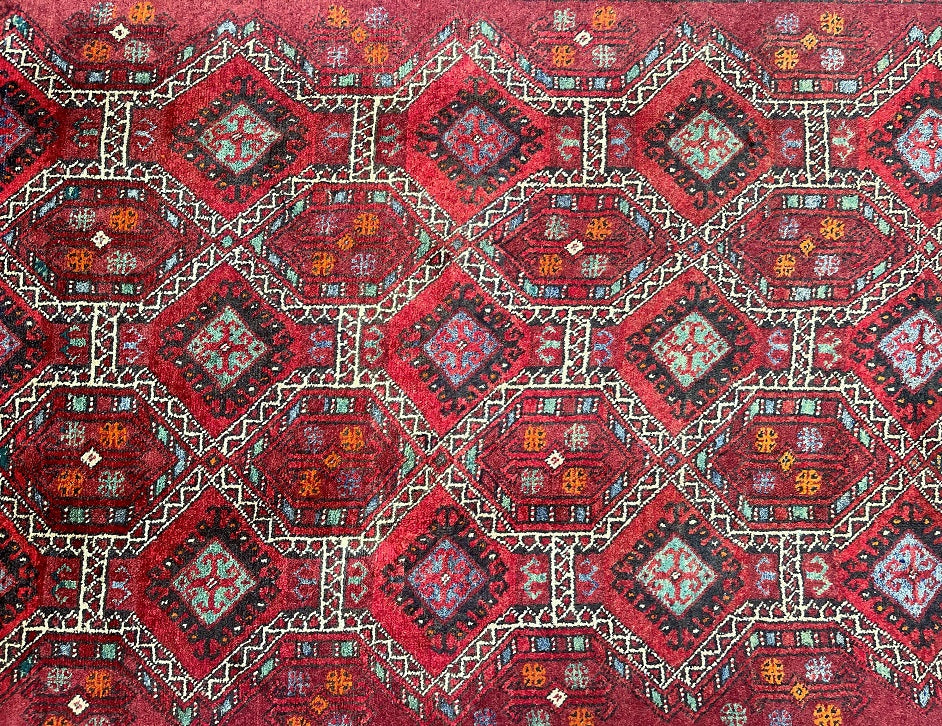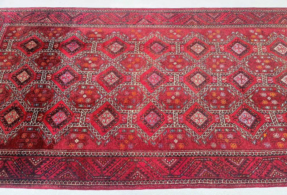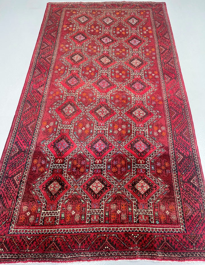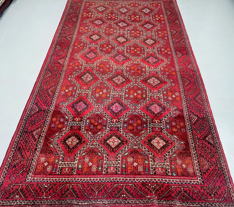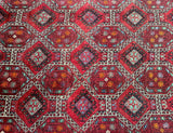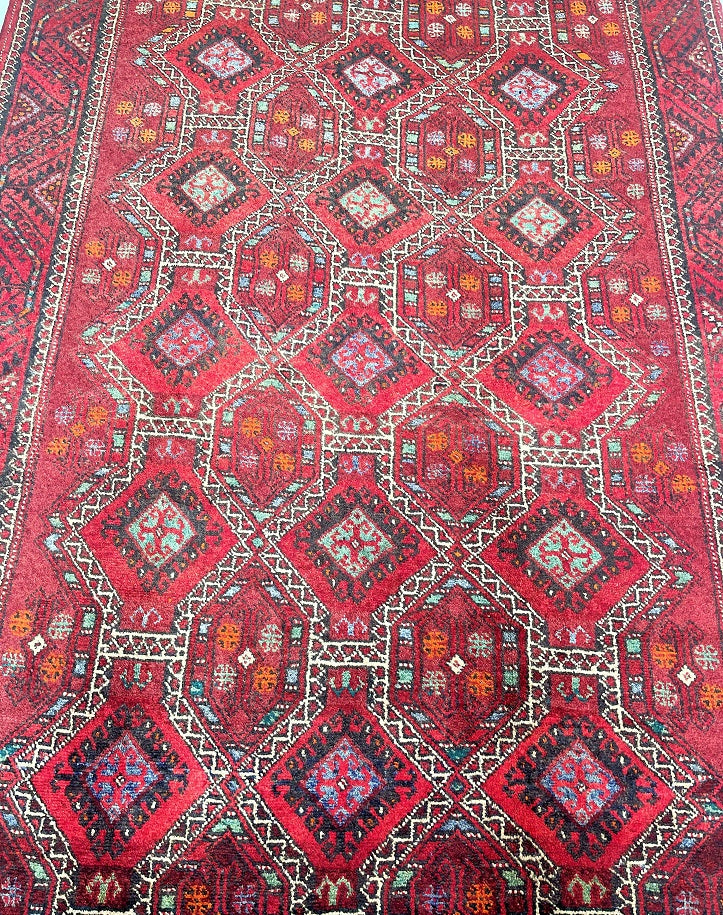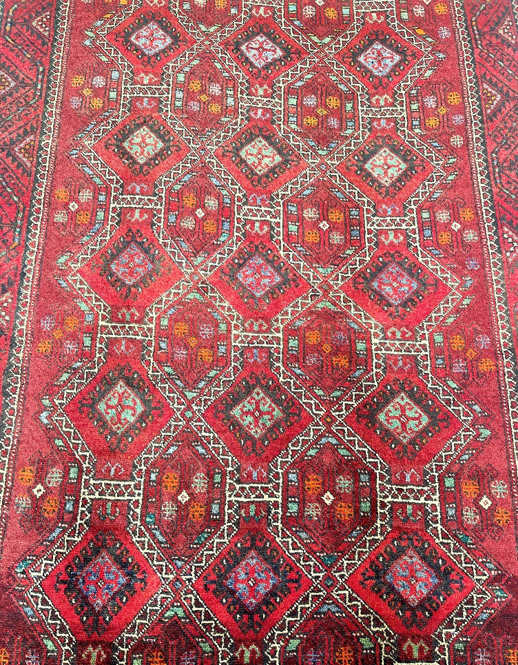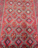 Rare Room Size Hand Knotted Vintage Persian Balouchi Rug. Above All It Is Pure Hand Spun Wool Pile On Cotton Base. Red, Brown, Beige, Green, Yellow And Black Tone Dyed Using Traditional Methods.