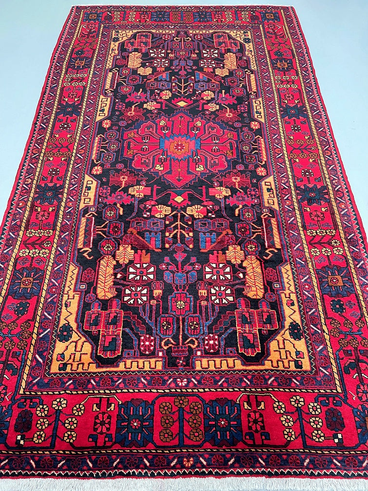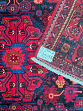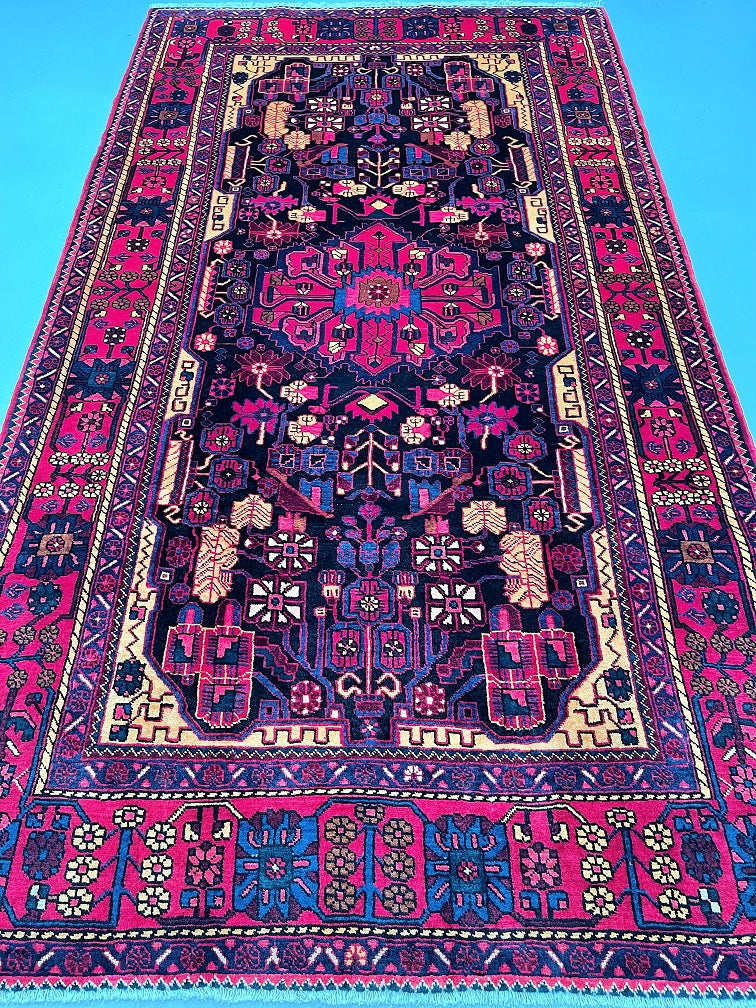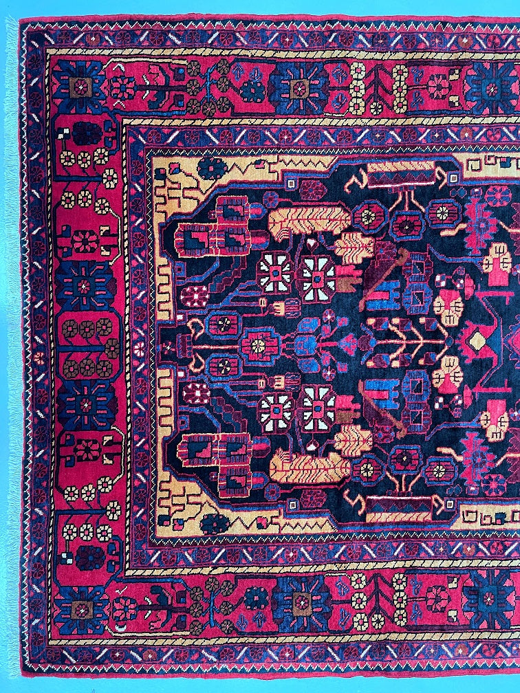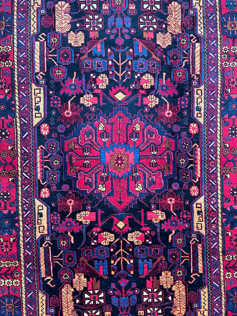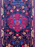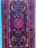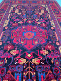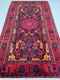 Gorgeous Full Room Size Authentic Handmade Vintage Persian Navahand Rug. Above All It Is Hard To Find Tribal Design Hand Made In Larger Sizes. Pure Hand Spun Wool Pile On Cotton Base. It Also Has A Deep Indigo Blue, Maroon Red, Beige, Light Blue And Pink Tone Dyed Using Traditional Methods.