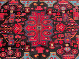 Room Size Authentic Handmade Persian Nahavand Rug. Above All It Is Hard To Find This Quality Handmade Tribal Rugs In Larger Sizes. It Also Has A Pure Hand Spun Wool Pile On Cotton Base. Indigo Blue, Orange, Pink, Mustard, Light Blue And Red Tone Dyed Using Traditional Methods.