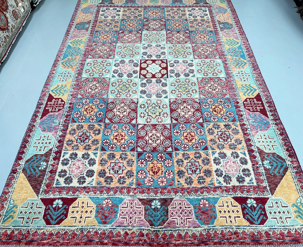 Full Room Size Moroccan Style Hand Knotted Afghan Gabbeh Rug. Above All It A Thick Wool Pile On Wool Base. Multi-Color Tones Dyed Using Traditional Methods. Last of True Woven Nomadic Art.