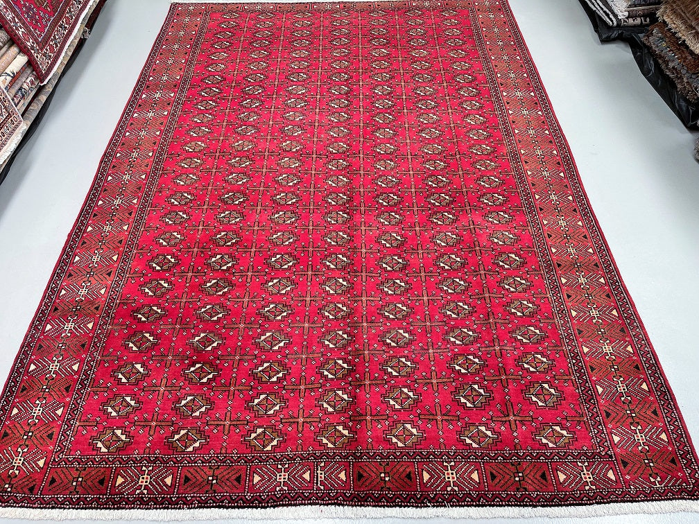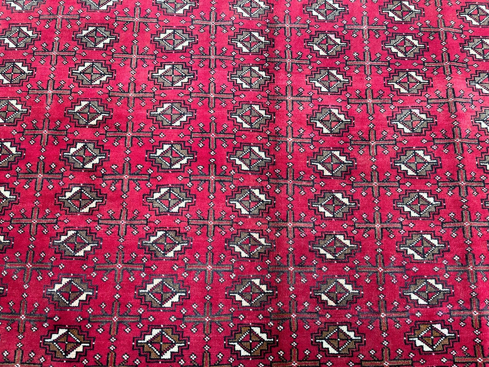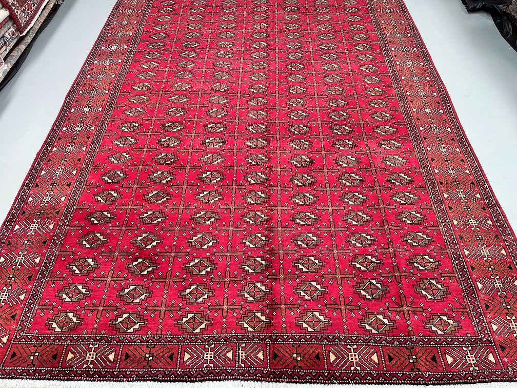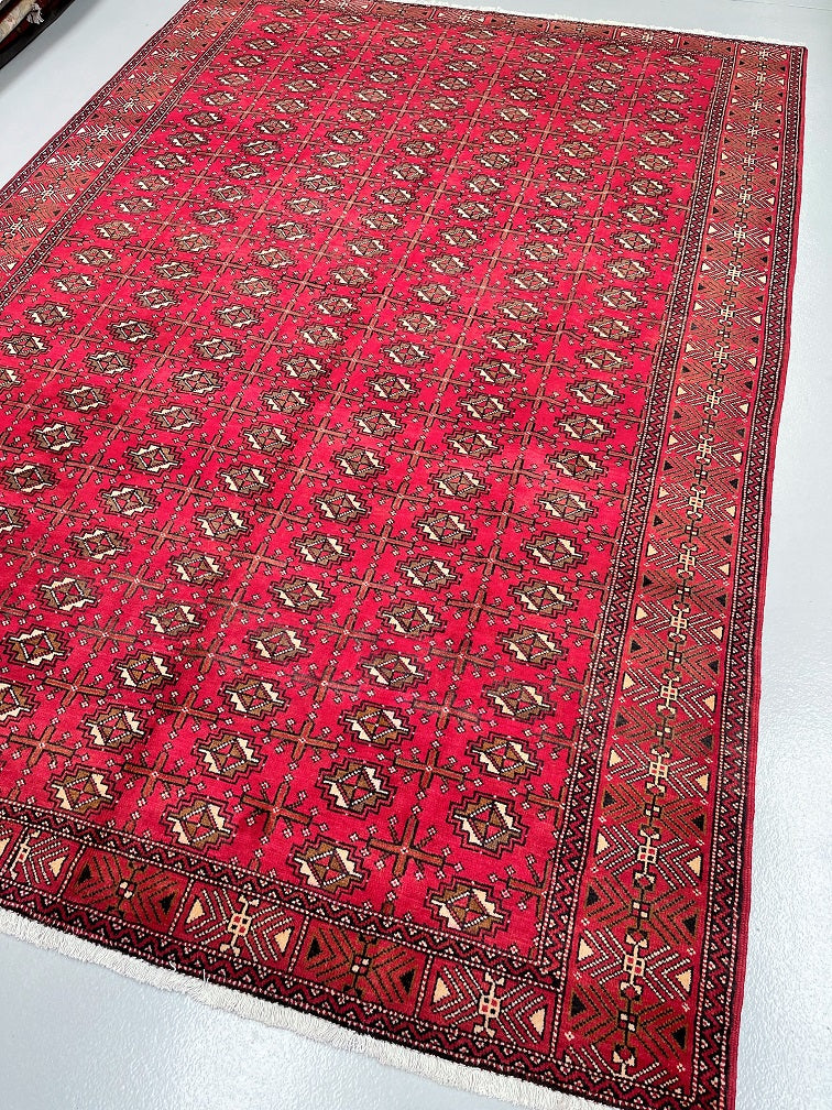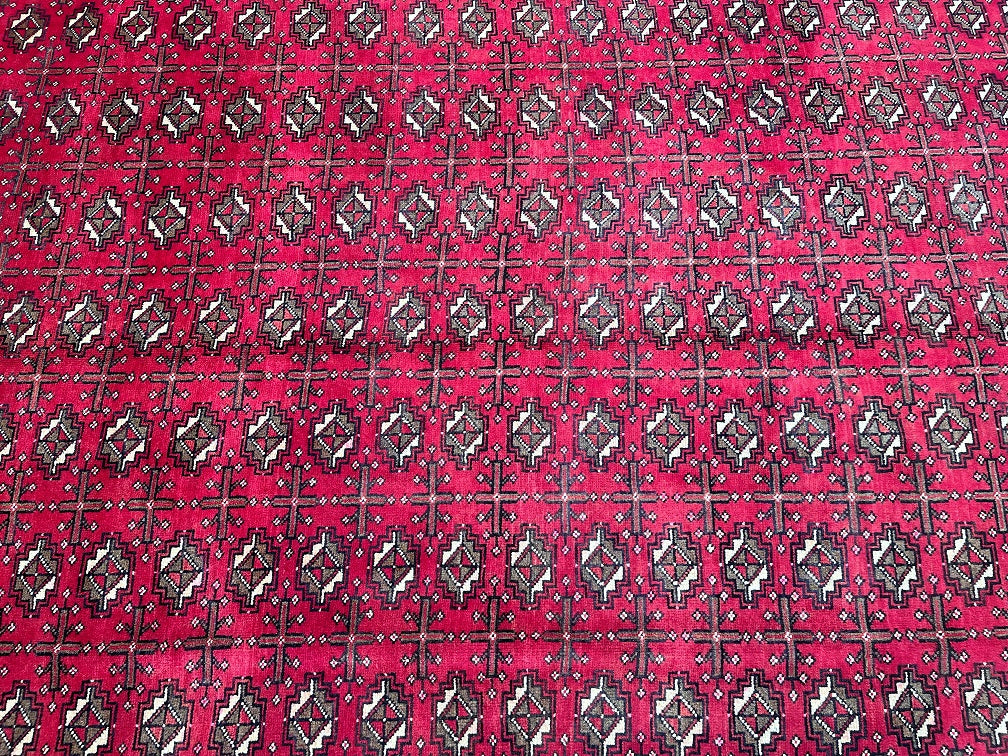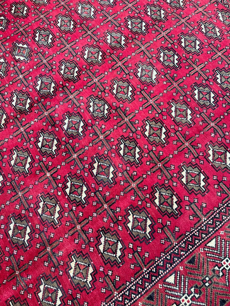 Full Room Size Authentic Handmade Vintage Persian Balouchi Rug. It Has A Pure Hand Spun Wool Pile On Cotton Base. Rustic Red, Black And Touch Of Brown Tones Dyed Using Traditional Methods.