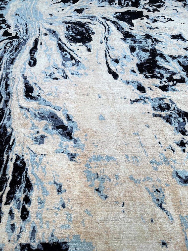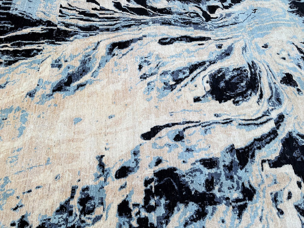 Large Room Size Modern Hand Knotted Afghan Chobi Rug. Above All It Is Pure Hand Spun Wool Pile On Cotton Base. Decorative Beige, Blue and Black Tone Dyed Using Traditional Methods (Vegetable Dyes). Last of True Woven Nomadic Art.