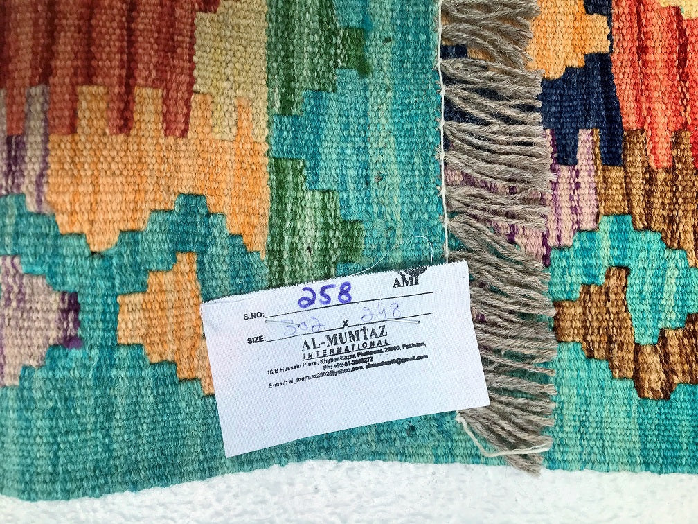 Certified Handmade Afghan Kilim Rug 302x248cm