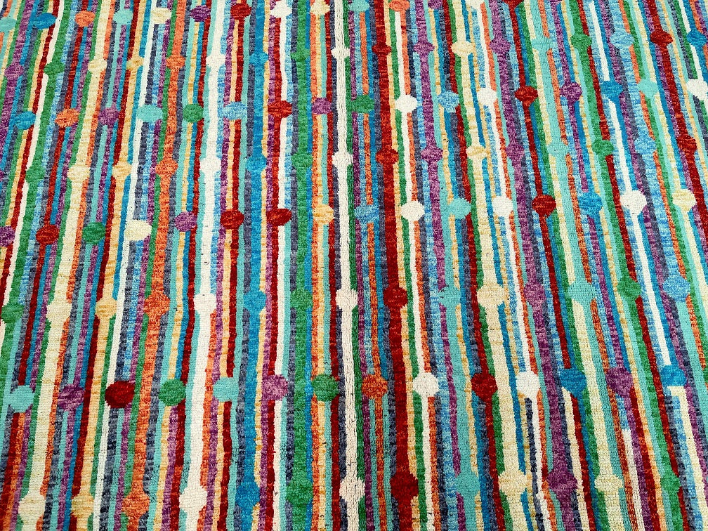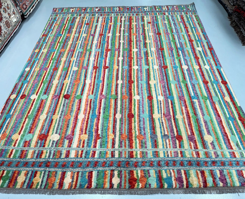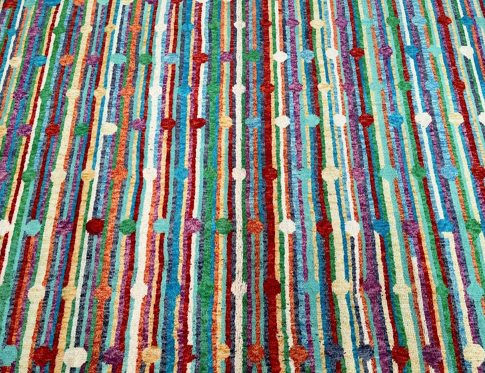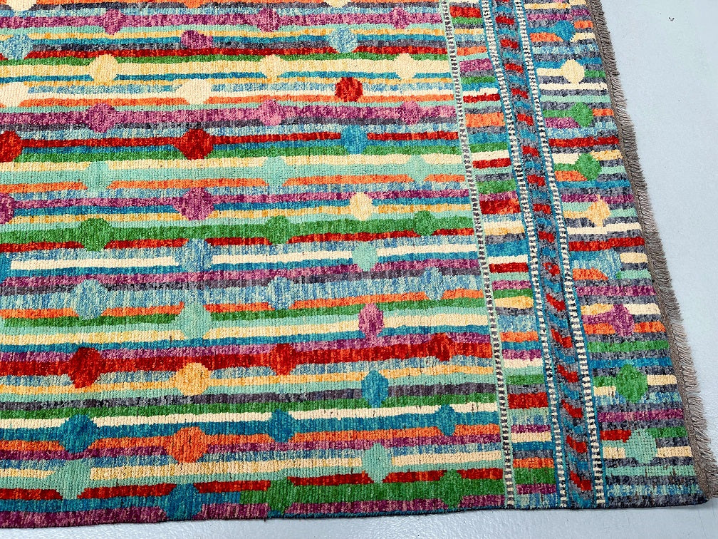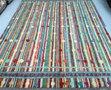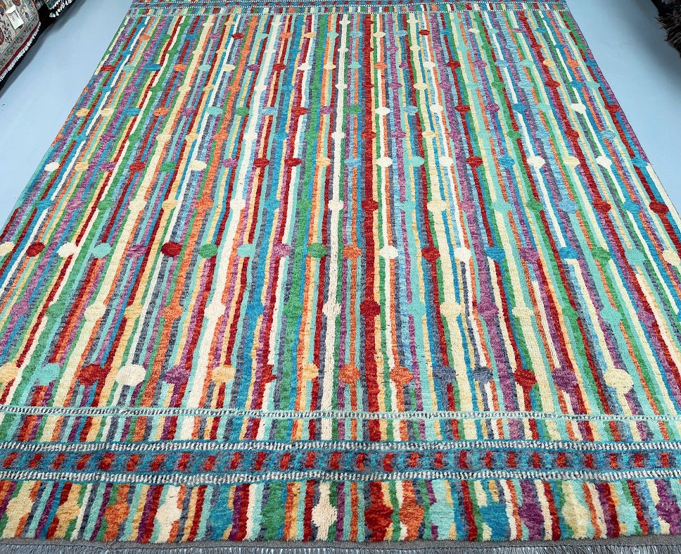 Large Room Size Boho Hand Knotted Afghan Gabbeh Rug. Above All It Has A Thick Wool Pile On Wool Base. Multi-Color Tone Dyed Using Traditional Methods. Last of True Woven Nomadic Art.