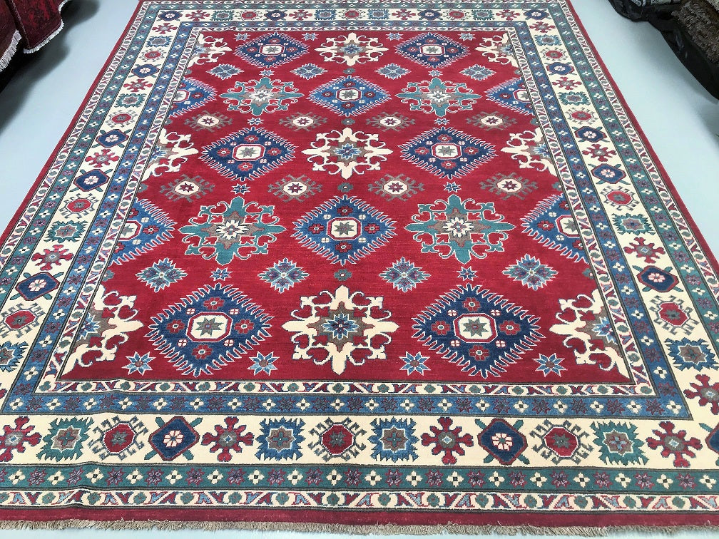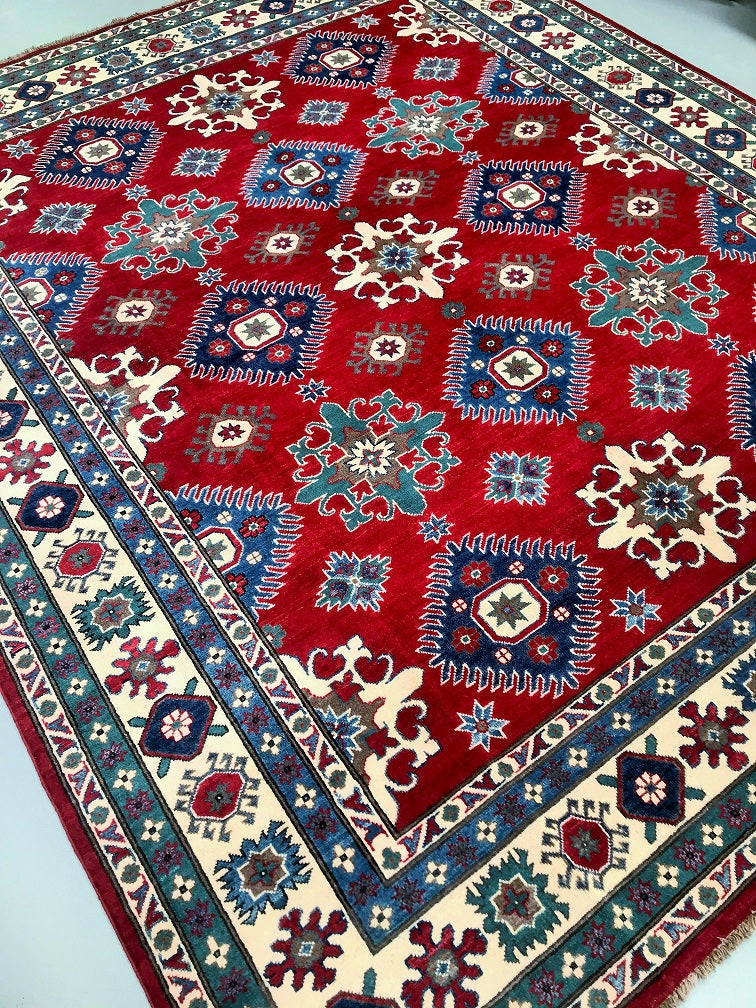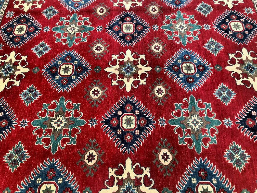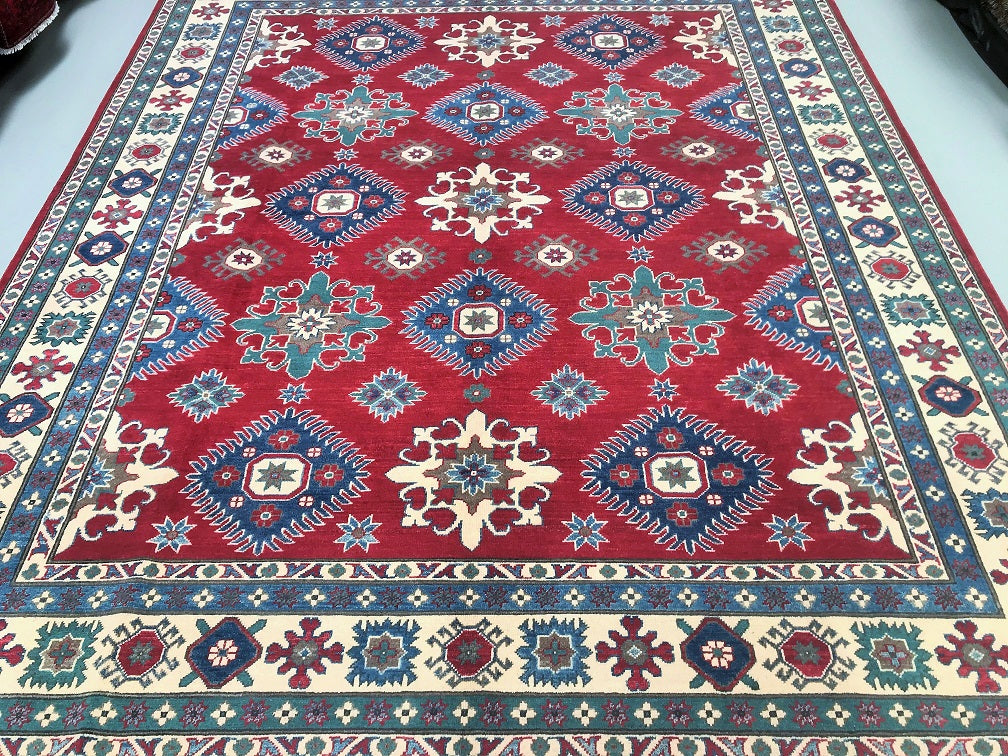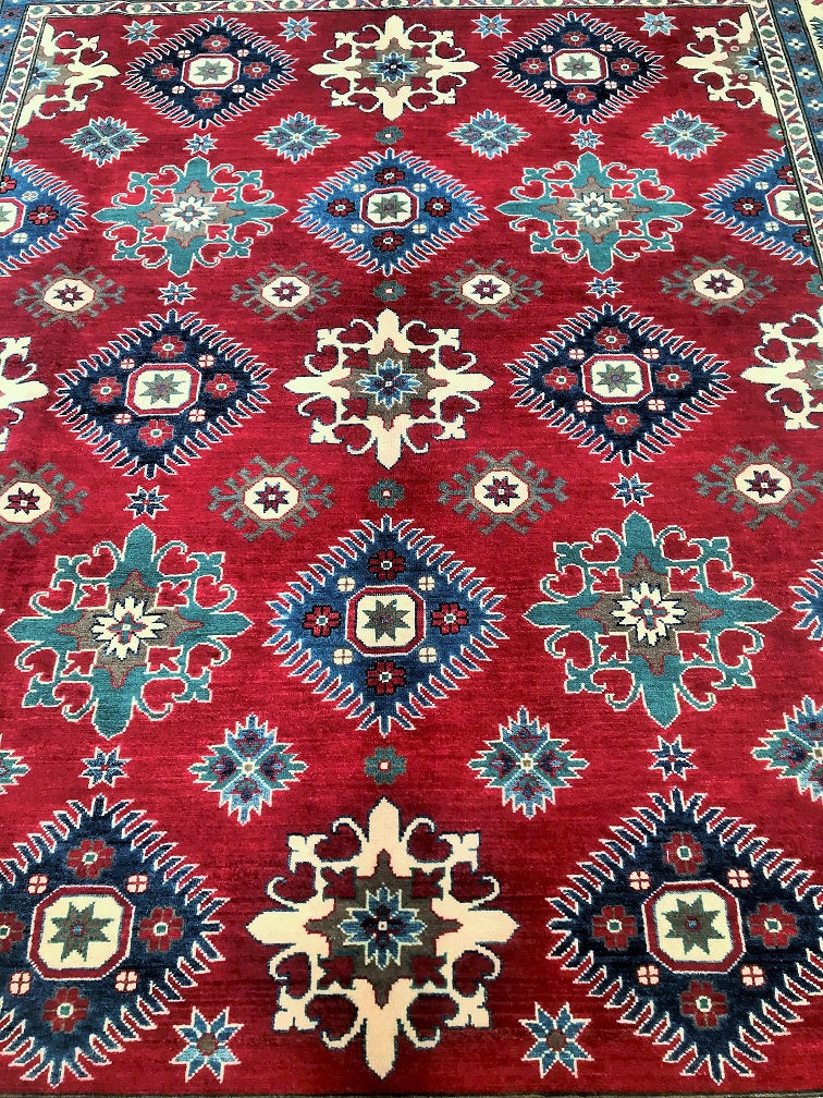Large Room Size Caucasian Design Afghan Kazak rug. Above All It Is Pure Hand Spun Wool Pile On Cotton Base. Maroon/Red, Beige, Blue And Green Tone Dyed Using Traditional Methods (Vegetable Dyes). Last Of True Woven Tribal Art.