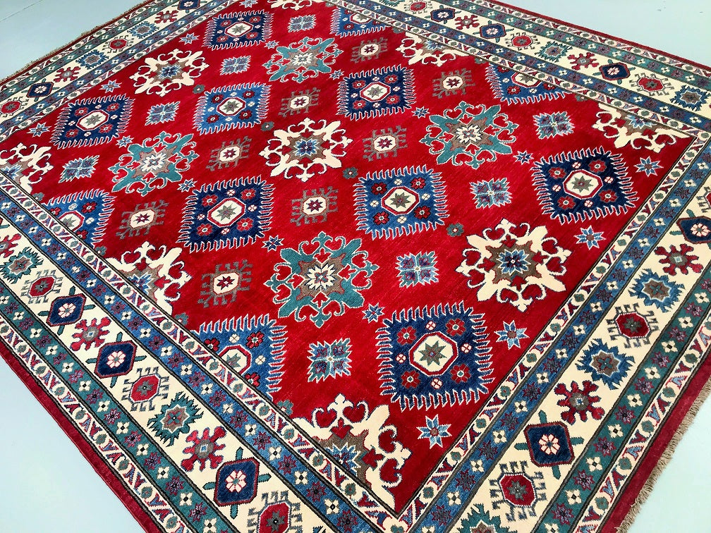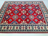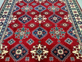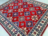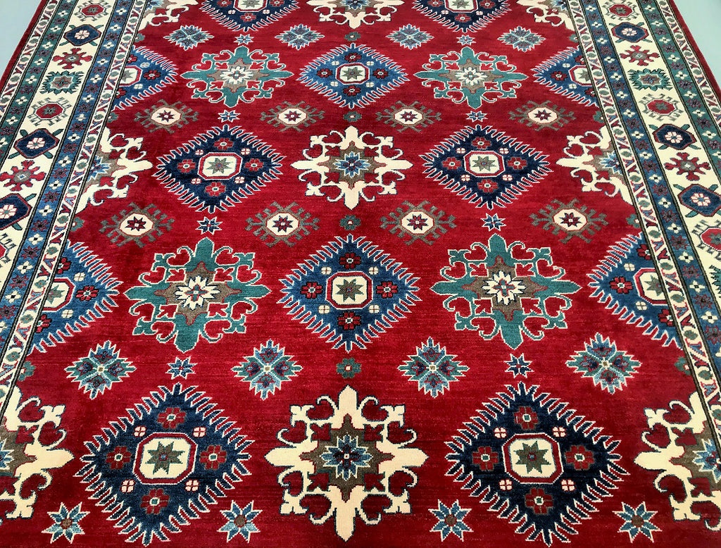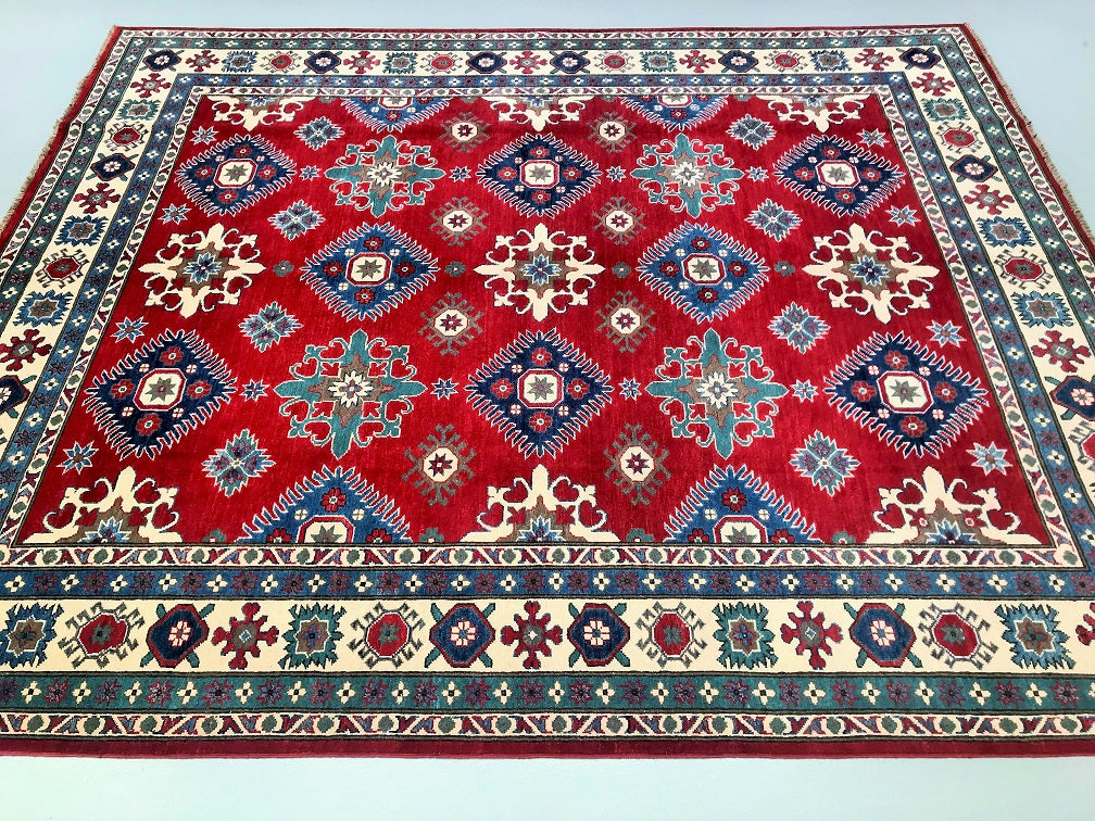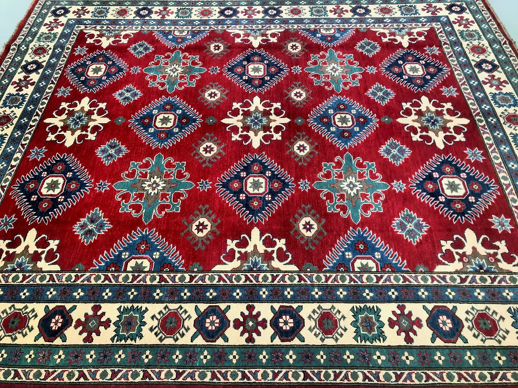 Large Room Size Caucasian Design Afghan Kazak rug. Above All It Is Pure Hand Spun Wool Pile On Cotton Base. Maroon/Red, Beige, Blue And Green Tone Dyed Using Traditional Methods (Vegetable Dyes). Last Of True Woven Tribal Art.