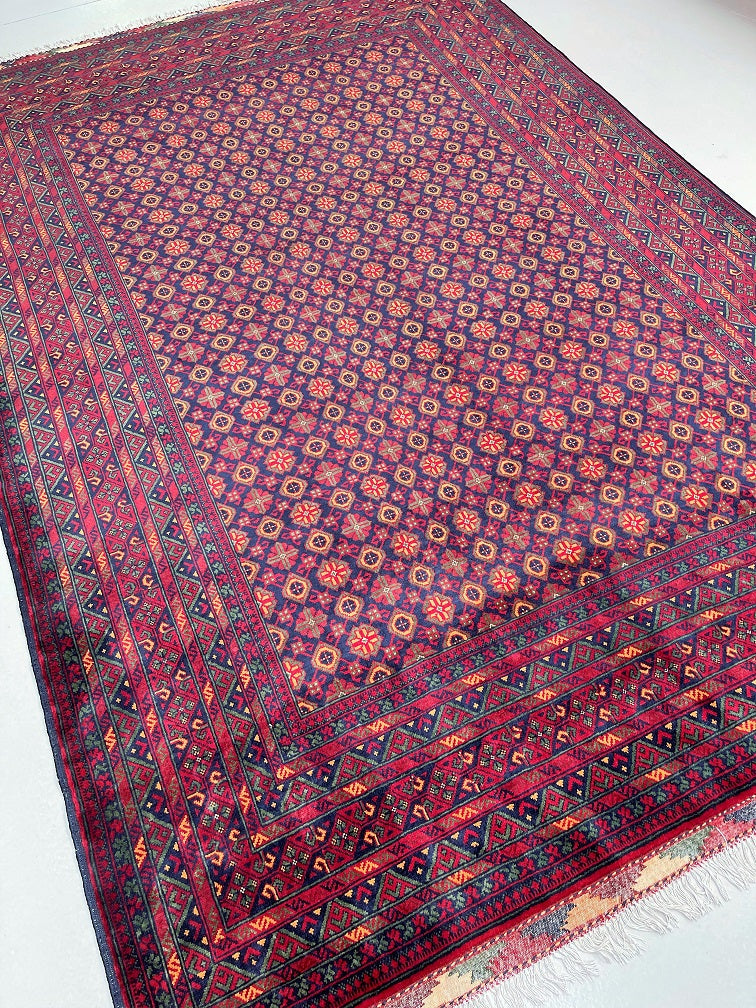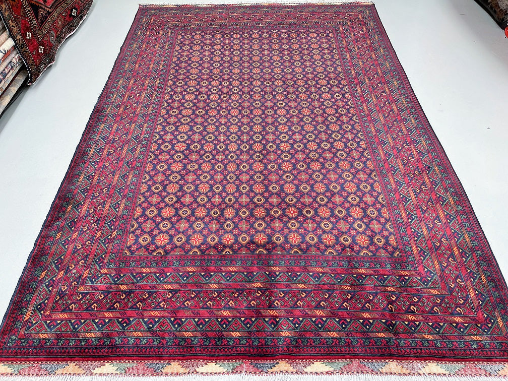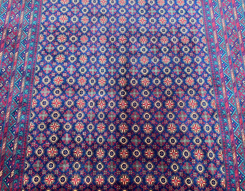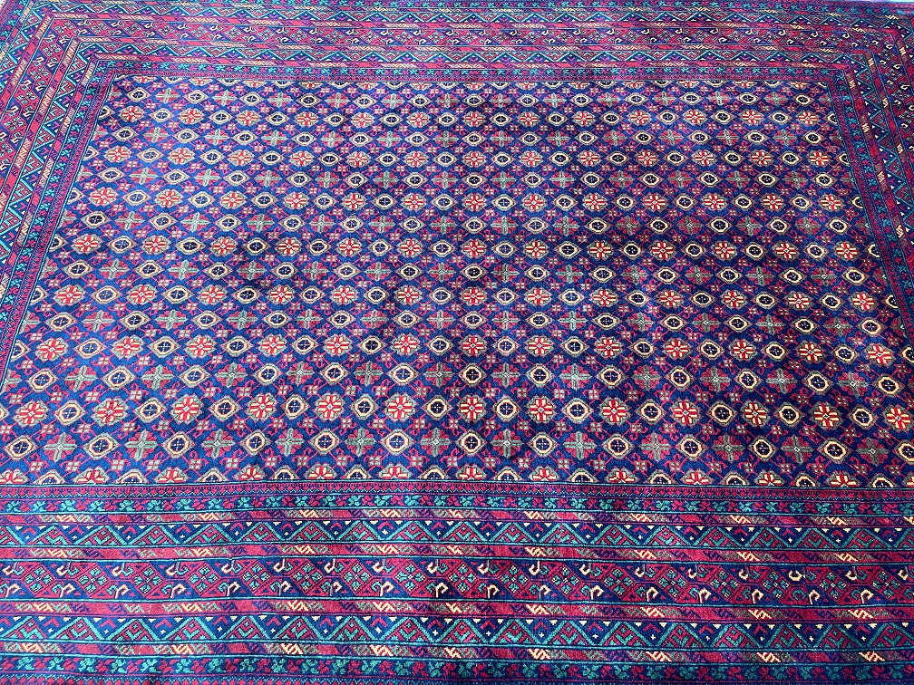 Superb Full Room Size Authentic Hand Knotted Afghan Bashiri Roshnai Rug. Above All It Has A Lamb’s Ghazni Wool Pile On Wool Base. It Also Has A Deep Indigo Blue, Maroon, Yellow And Green Tone Dyed Using Traditional Methods.