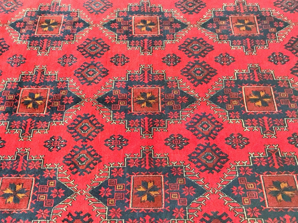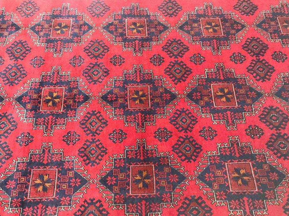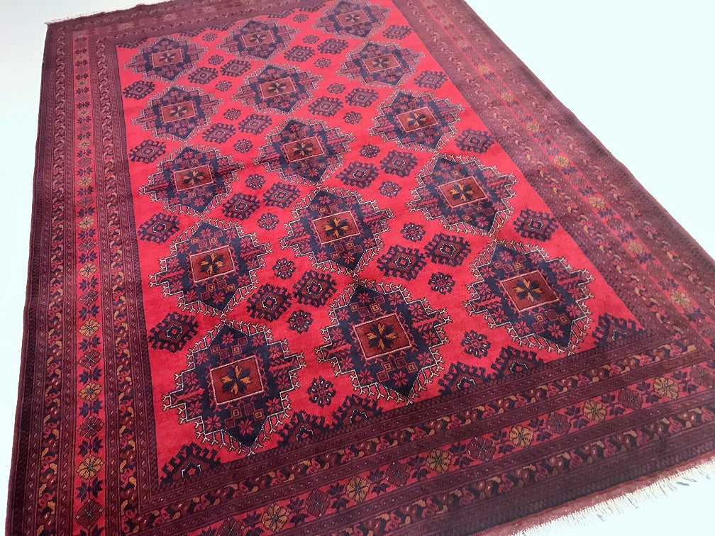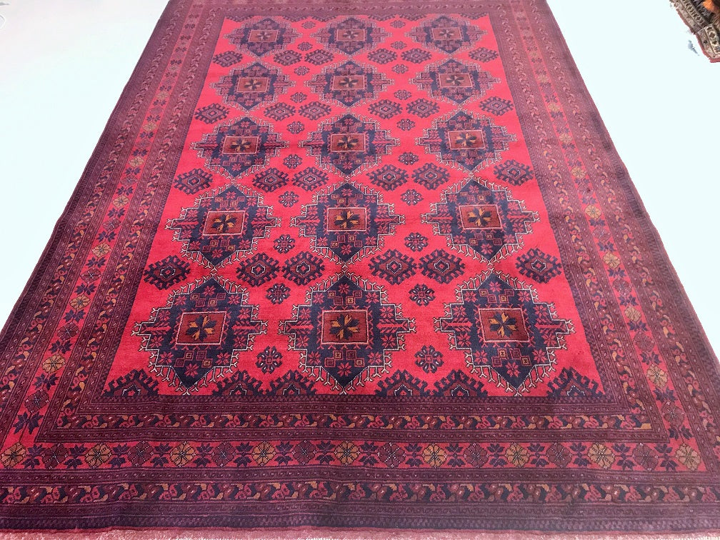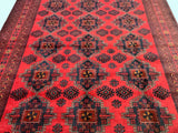 Full Room Size Nomadic Hand Knotted Afghan Khal Rug. Above All It Has A Pure Hand Spun Wool Pile On Cotton Base. It Also Has a Burgundy/ Burnt Terracotta Tone Dyed Using Traditional Methods.