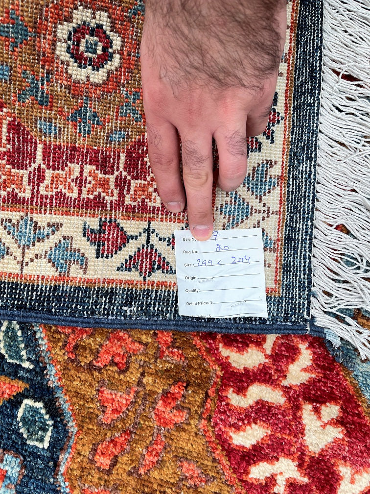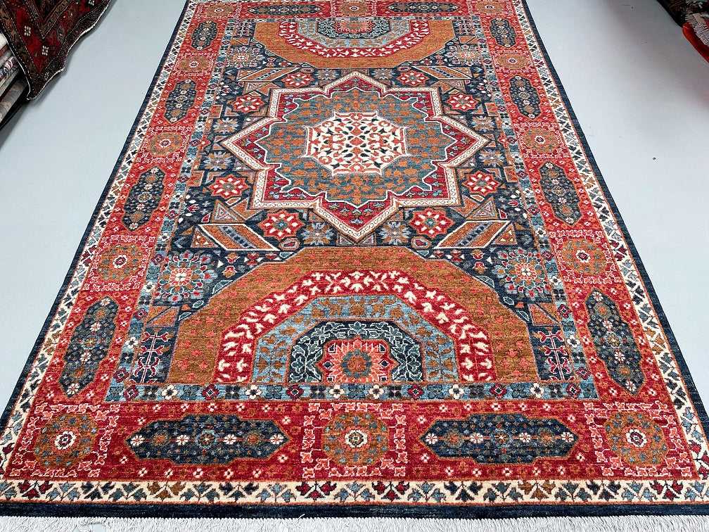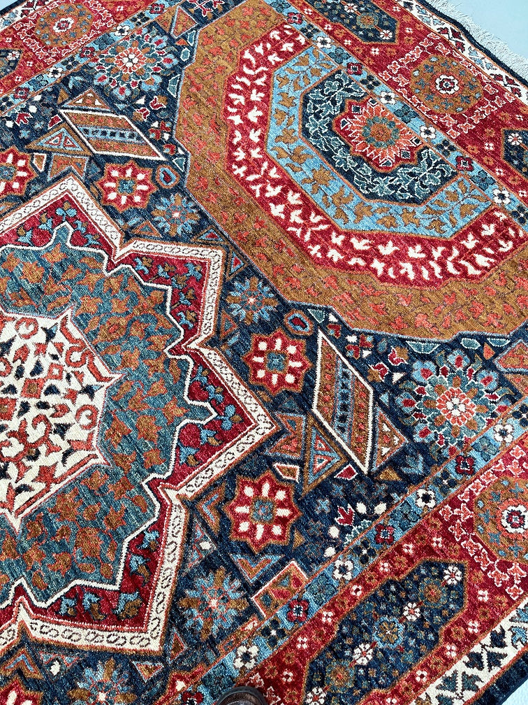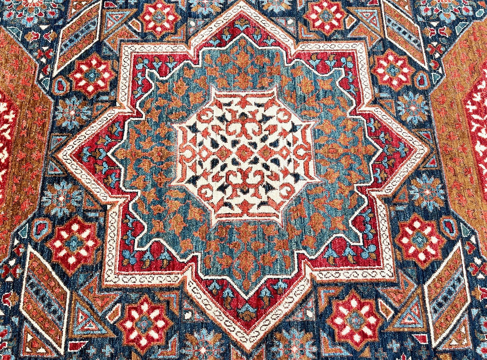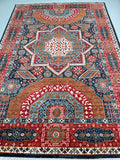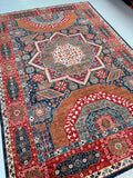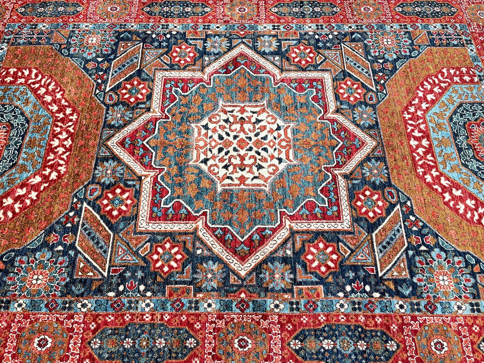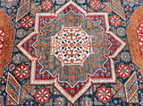 Full Room Size Authentic Hand Knotted Mamluk Design Super Kazak Rug. Above All It Is Pure Hand Spun Wool Pile On Cotton Base. It Also Has An Indigo Blue, Terracotta, Beige, Orange And Aqua Tone Dyed Using Traditional Methods (Vegetable Dyes). Last of True Woven Nomadic Art.