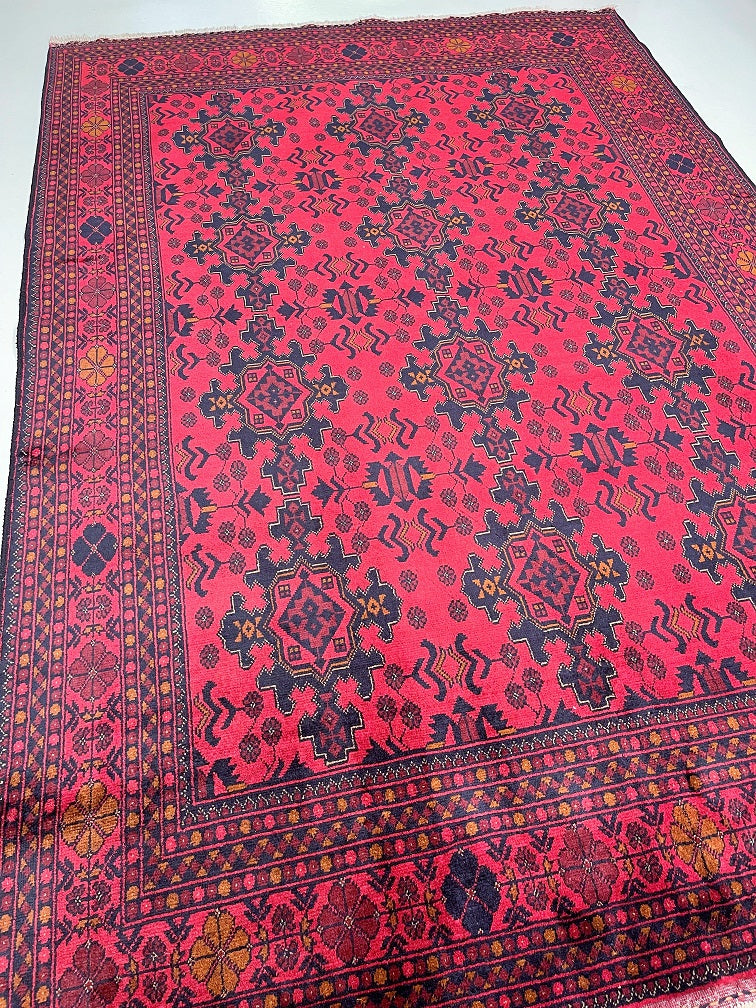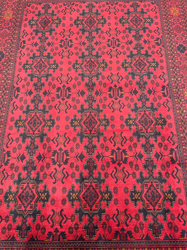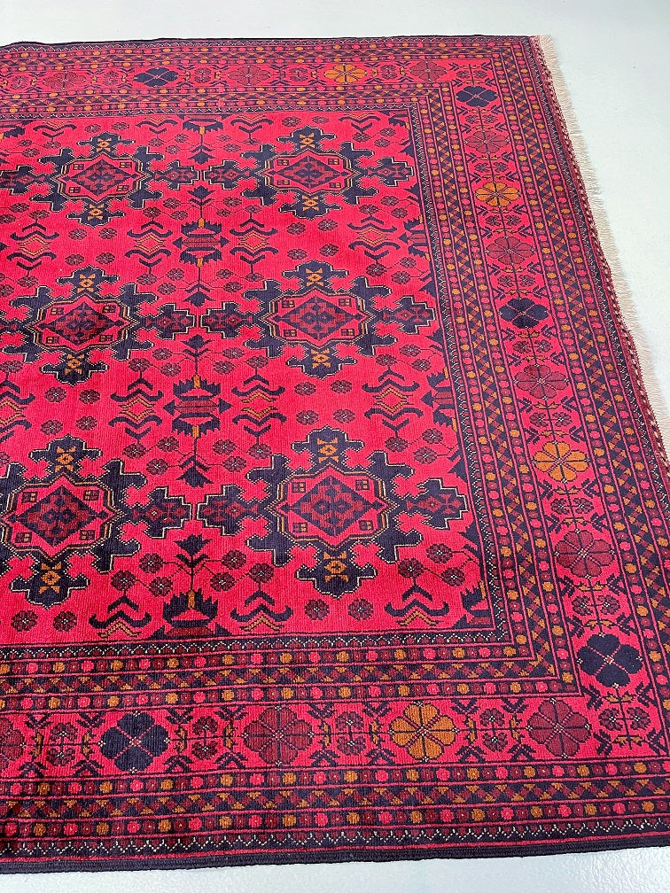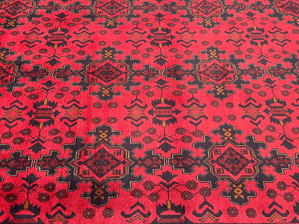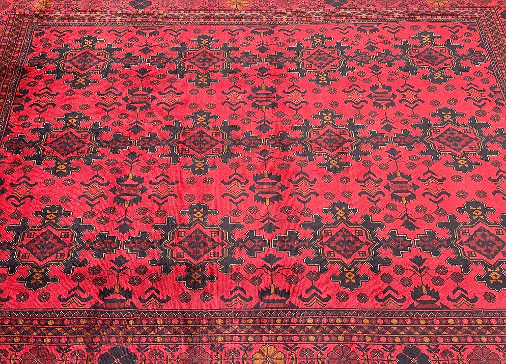 Full Room Size Authentic Hand Knotted Afghan Qunduz Rug. Above All It Has A Pure Hand Spun Wool Pile On Cotton Base. It Also Has a Burnt Terracotta/Maroon Tone Dyed Using Traditional Methods.