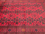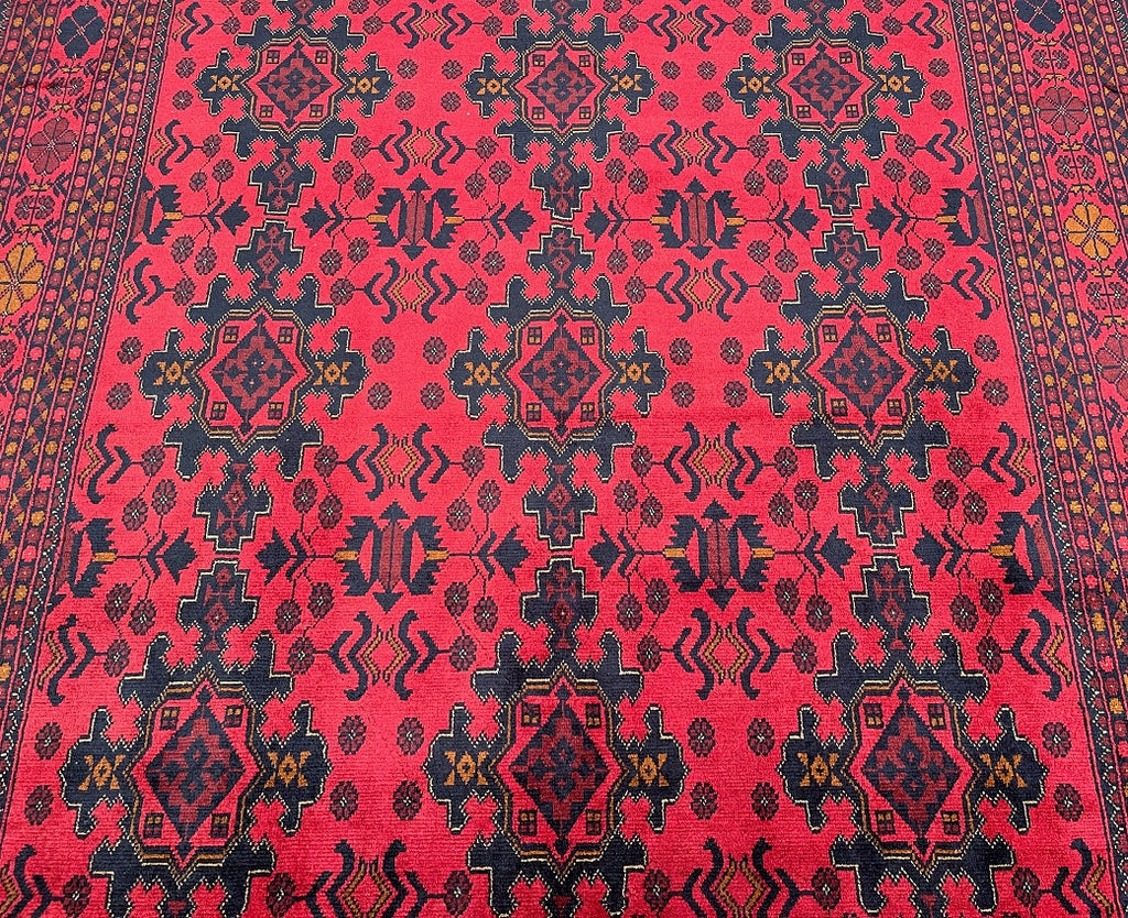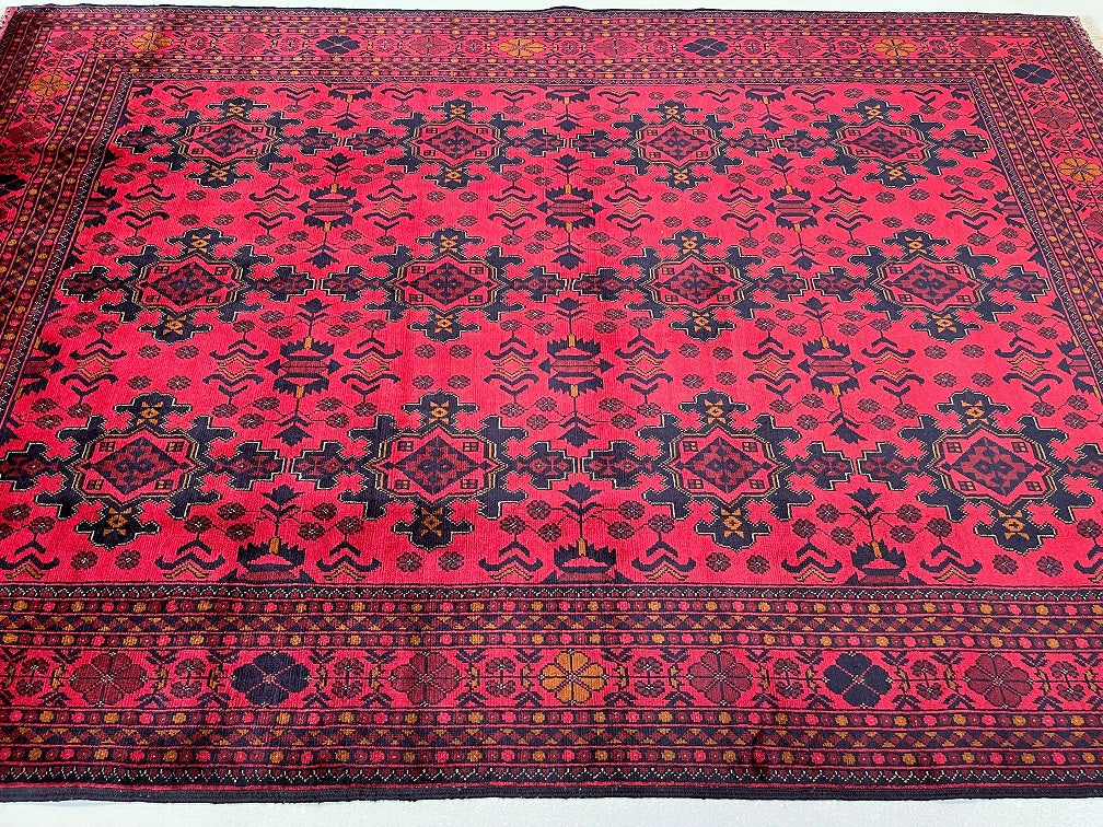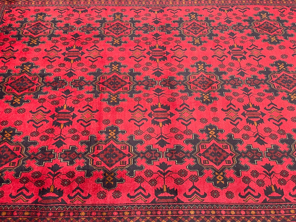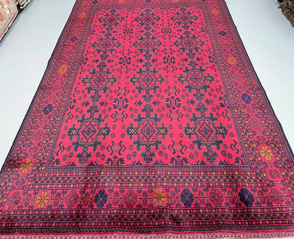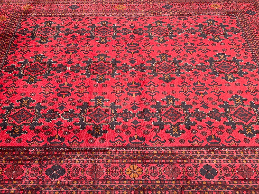 Full Room Size Authentic Hand Knotted Afghan Qunduz Rug. Above All It Has A Pure Hand Spun Wool Pile On Cotton Base. It Also Has a Burnt Terracotta/Maroon Tone Dyed Using Traditional Methods.