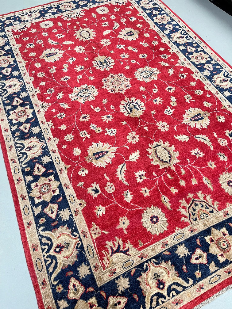 Full Room Size Genuine Handmade Afghan Chobi Rug. Above All It Has A Pure Hand Spun Wool Pile On Cotton Base. Red, Indigo Blue And Beige Tone Dyed Using Vegetable Dyes. Last Of True Woven Nomadic Art.