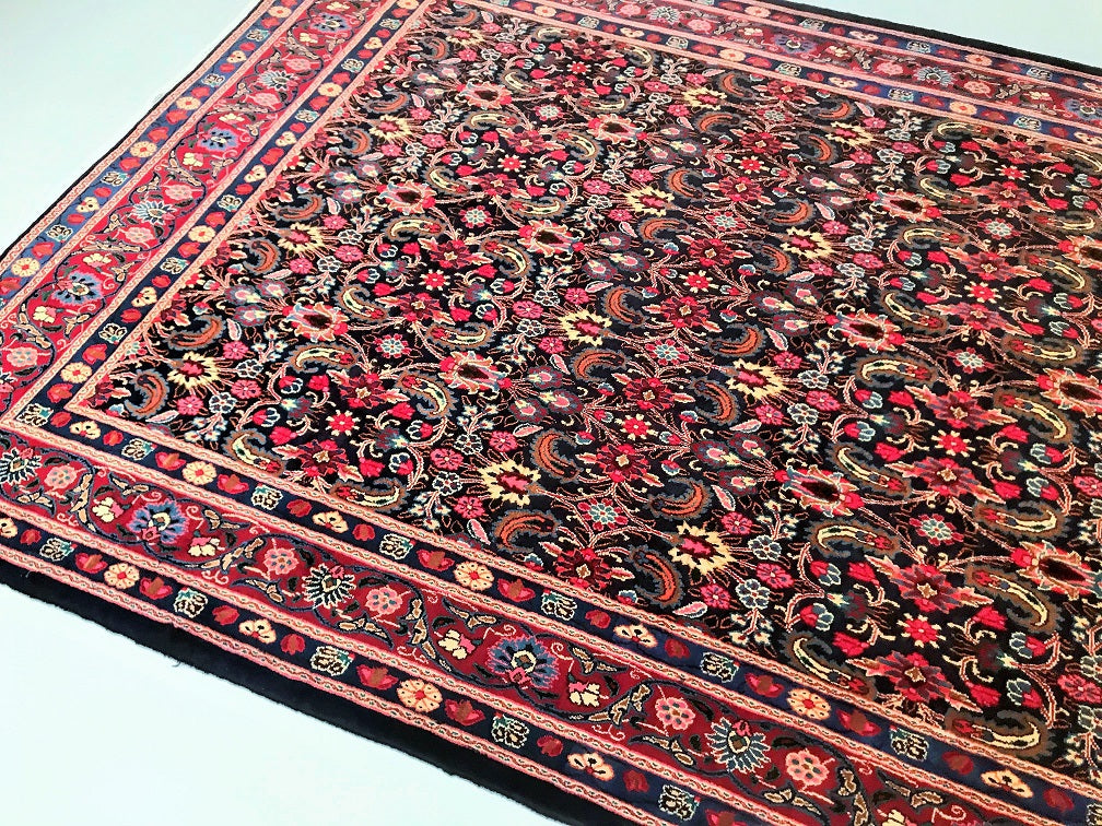 Stunning Full Room Size Authentic Handmade Persian Birjand Rug. Above All This Is Such A Unique Design Which Will Add Life To Any Room. It Has a Pure Lamb’s Wool Pile on Fine Cotton. Indigo Blue Tone With Touch Of Red And Pink Dyed Using Traditional Methods.