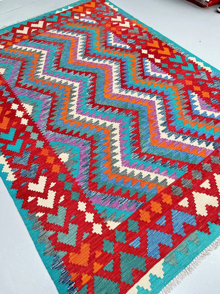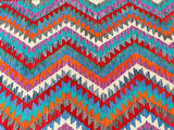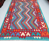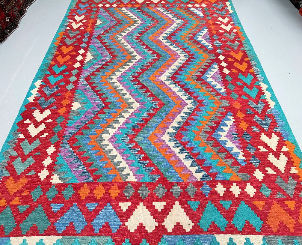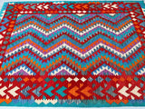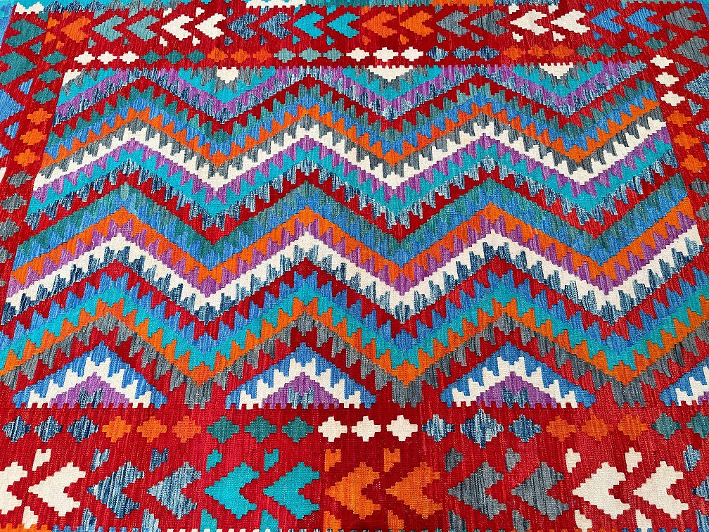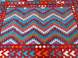 Decorative Full Room Size Bohemian Design Hand Woven Afghan Waziri Kilim Rug. Above All This Rug Is Reversible. It Also Has A Pure Hand Spun Wool Pile On Wool Base. Vibrant Multi-Color Tone Dyed Using Traditional Methods.