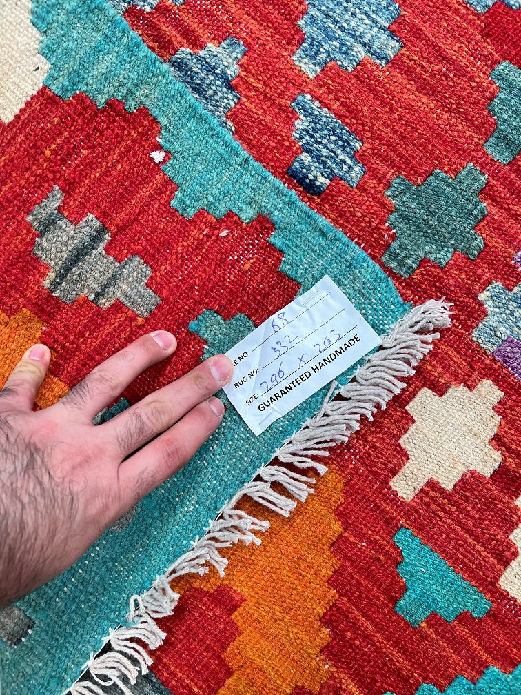 Certified Hand Woven Afghan Kilim Rug 296x203cm