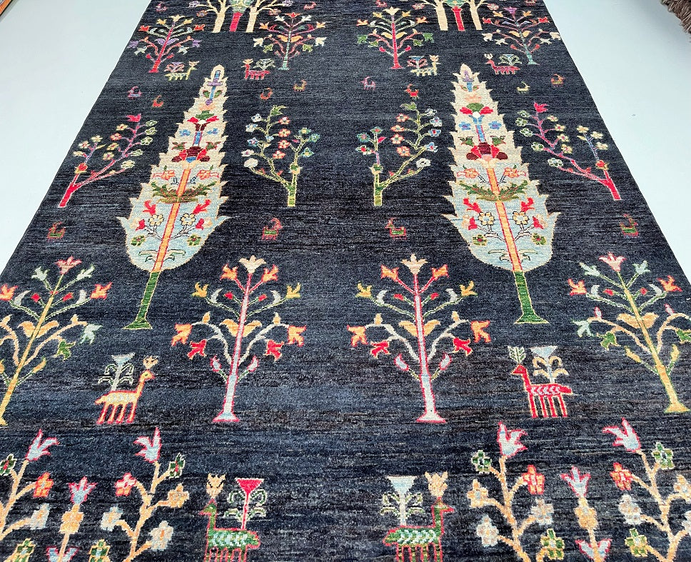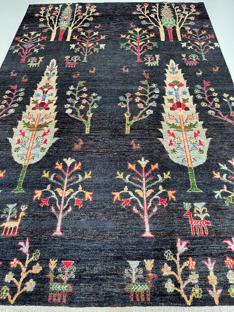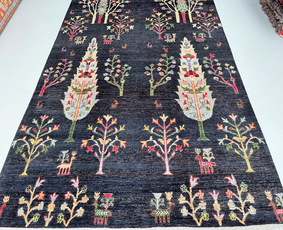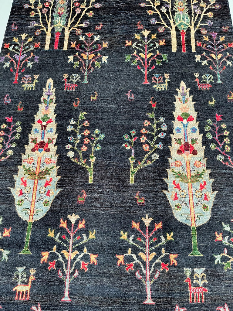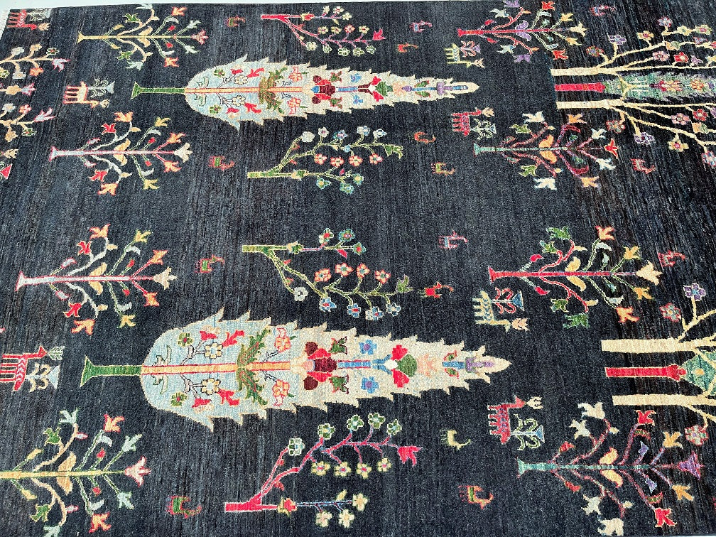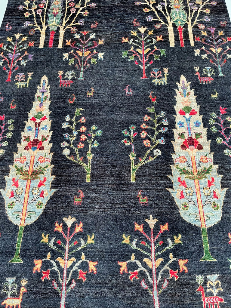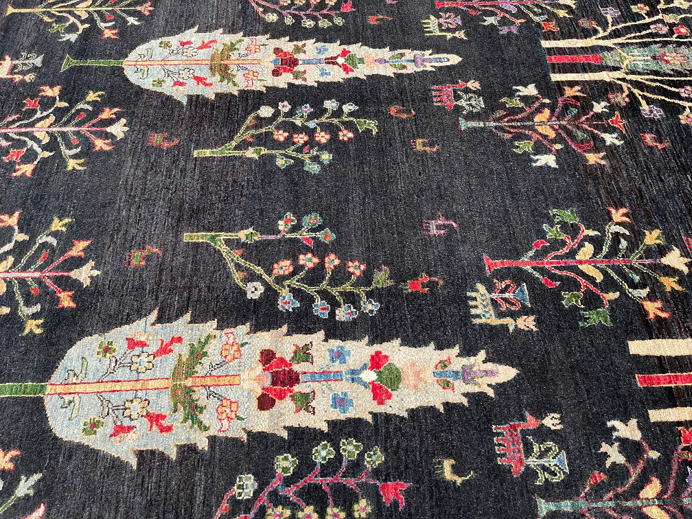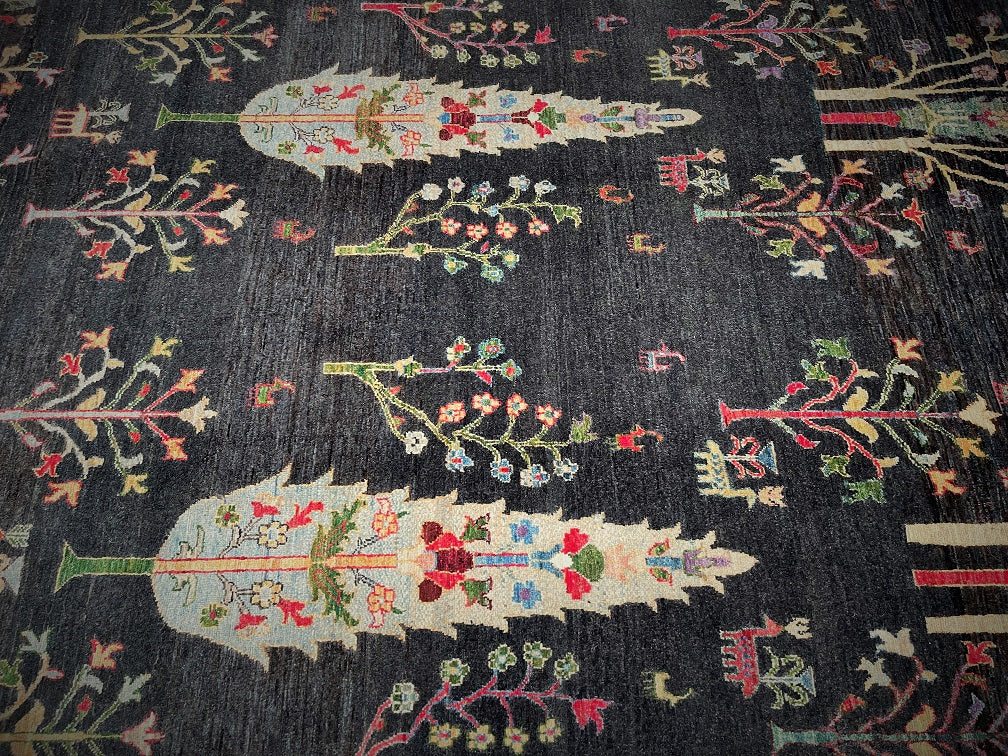 Full Room Size Authentic Hand Knotted Afghan Chobi Rug. Above All It Is Pure Hand Spun Wool Pile On Cotton Base. Black, Beige, Gold, Red, Blue And Green Tone Dyed Using Vegetable Roots (Vegetable Dyes). Last of True Woven Nomadic Art.