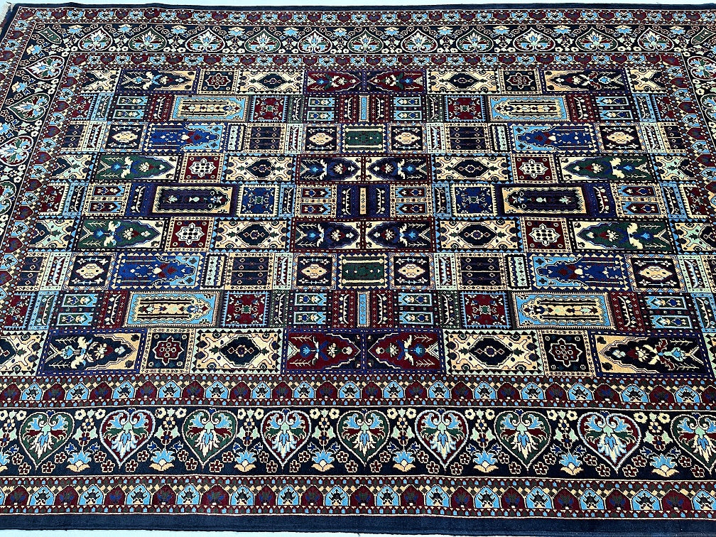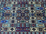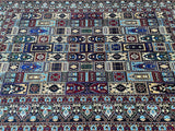 Full Room Size Authentic Hand Knotted Afghan Roshnai Rug. Above All It Is Pure Hand Spun Wool Pile On Cotton Base. Indigo Blue Tone Dyed Using Traditional Methods.
