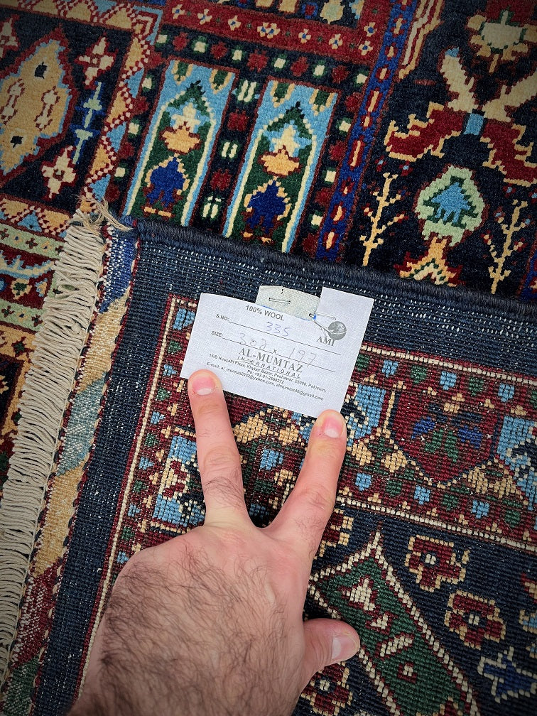 Certified Hand Knotted Afghan Rug 302x197cm