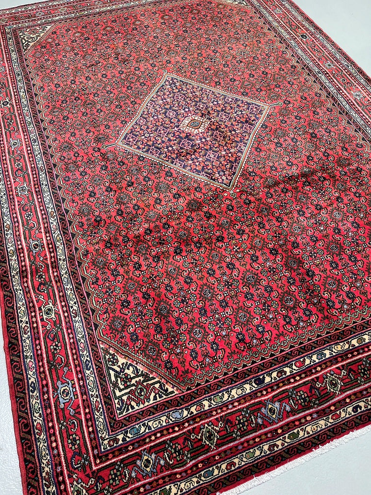 Full Room Size Authentic Handmade Persian Enjelas Rug. It Is Hard To Find This Quality Handmade From This Village. Above All It Has A Pure Hand Spun Wool Pile On Cotton Base. Pinkish Red, Blue, Beige And Green Tone Dyed Using Traditional Methods.