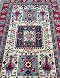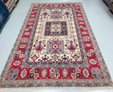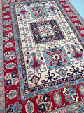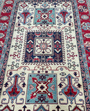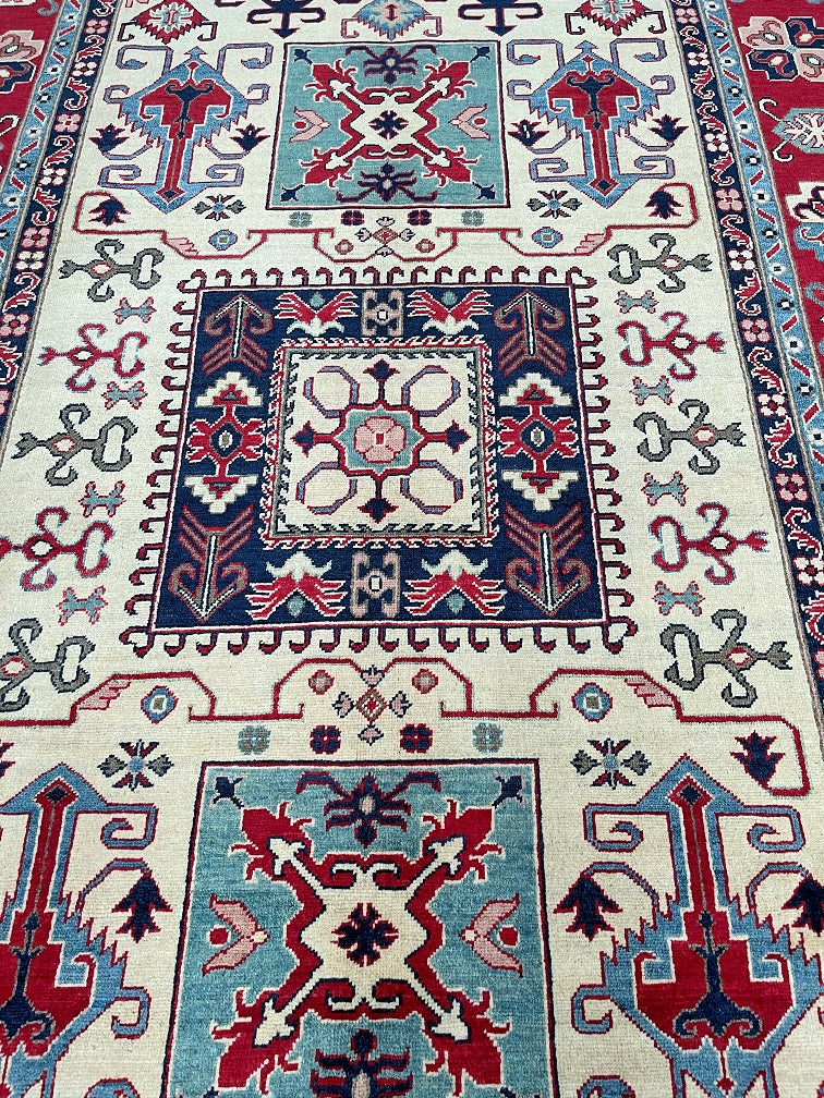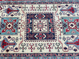 Full Room Size Hand Knotted Afghan Kazak Rug. Above All It Has A Pure Hand Spun Wool Pile On Cotton Base. Beige, Maroon And Aqua Marine And Blue Tone Dyed Using Traditional Methods (Vegetable Dyes). Last Of True Woven Tribal Art.
