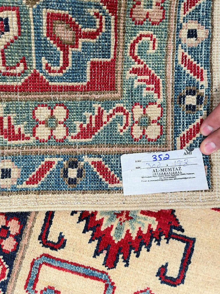 Certified Handmade Afghan Kazak Rug 302x198cm