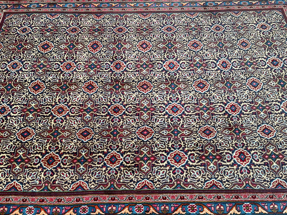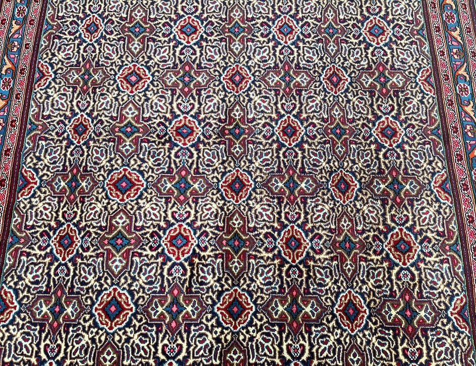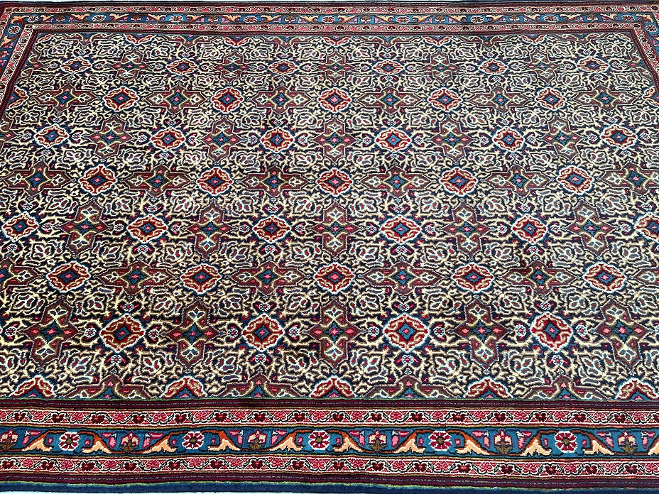 Full Room Size Authentic Handmade Persian Najafabad Rug. It Has A Dense Wool Pile On Cotton Base. Blues, Beige, Red, Brown And Pink Tone Dyed Using Traditional Methods.